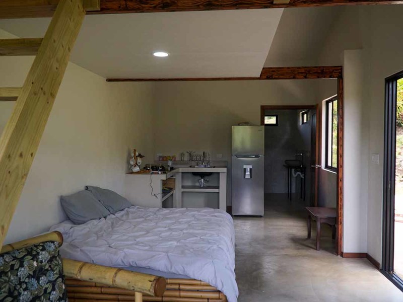 Adjacent to the main house is a “Casa” and “Casita” building, offering two completely separate rental/living accommodations. The 2-bedroom main "casa" has panoramic views from inside with huge glass windows along its rear and from the fully covered deck. You will be amazed by the stunning forest views from the additional attached but fully self-contained and independent "casita" with a mezzanine bed. Both "casa" and "casita" are fully-equipped living spaces with one fully-equipped shower room each. They share an outside laundry area and have on-demand electric hot water heating. The vaulted ceilings, polished concrete floors, and ambient lighting give these living spaces a modern and stylish feel. The panoramic windows and sliding glass doors offer breathtaking views of the surrounding landscape.