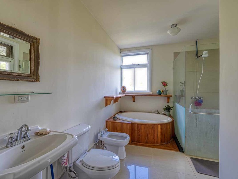 The property features a total of 6 bedrooms and 4.5 bathrooms spread across three separate living spaces. The main house is a charming two-story residence with three bedrooms and 2.5 baths. You will love the beautiful hardwood floors throughout the house, adding warmth and character to this cozy home. The ground-floor master bedroom features an ensuite bathroom for your convenience. The two upstairs bedrooms are spacious and bright, one with a small balcony and the other with access to the main balcony. The full bathroom upstairs is beautifully designed with modern fixtures and plenty of natural light. The main house also boasts solar water heating, ensuring a more eco-friendly and cost-effective living experience.