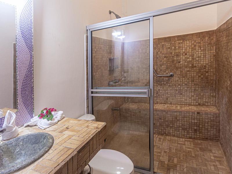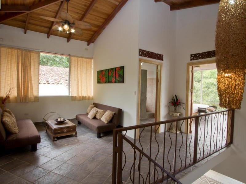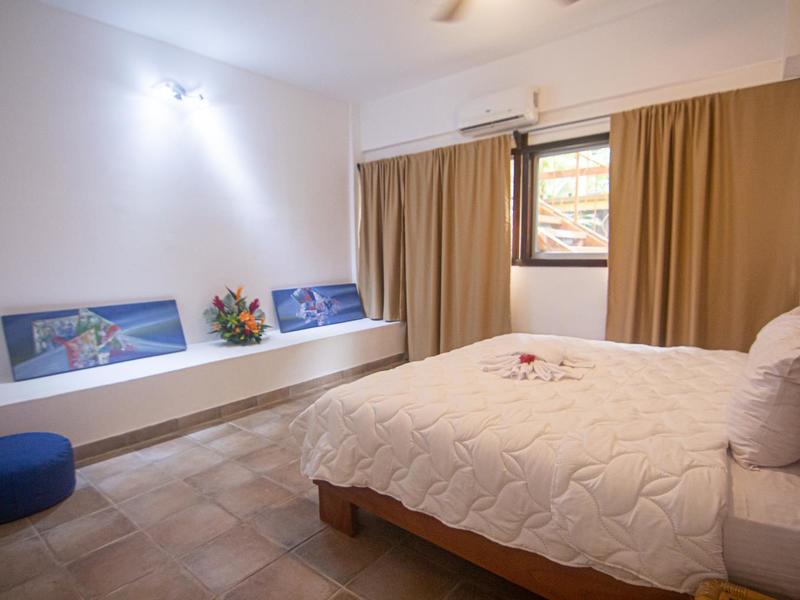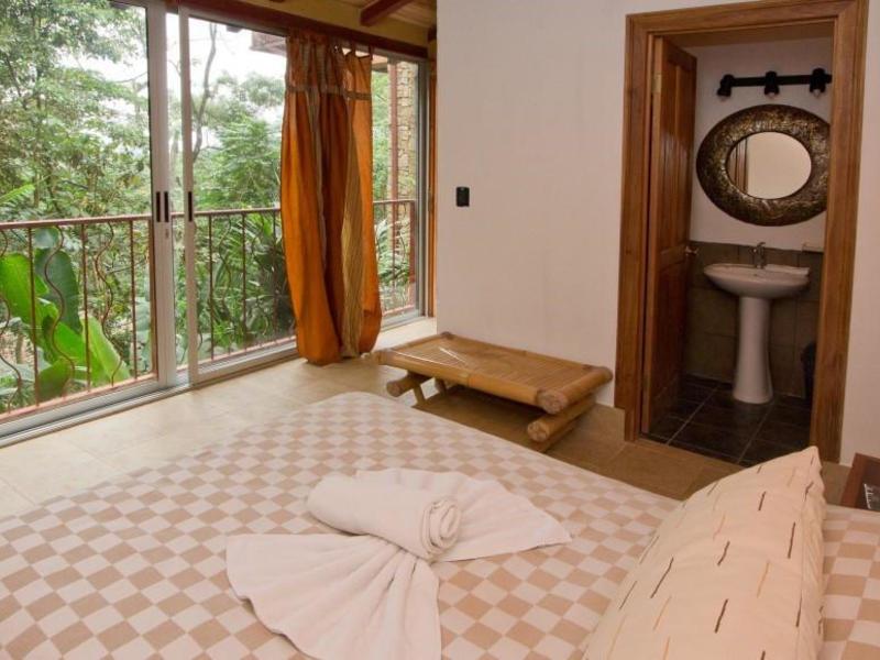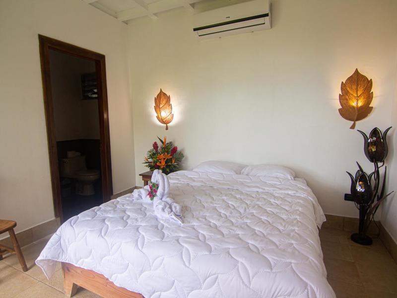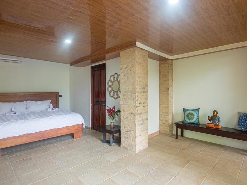 Retreat to the lavish master suite, complete with a king-size bed, a serene sitting area with sweeping jungle views, and a private bathroom with an indulgent Jacuzzi tub. Two additional floors below the main house offer ample space for guests, two bedrooms with 15-foot vaulted wooden beam ceilings, two bathrooms, and a living area with a mini kitchen and separate entrance. The fifth bedroom, thoughtfully furnished with a queen-size bed and an ensuite bathroom awaits across the terrace. The sixth bedroom stands as a palatial haven of relaxation, featuring a king-size bed, its own private balcony, and a master bathroom. For larger groups, the seventh bedroom complete with air conditioning, a private bathroom, and a convenient kitchenette ensures everyone will have ample privacy and comfort.