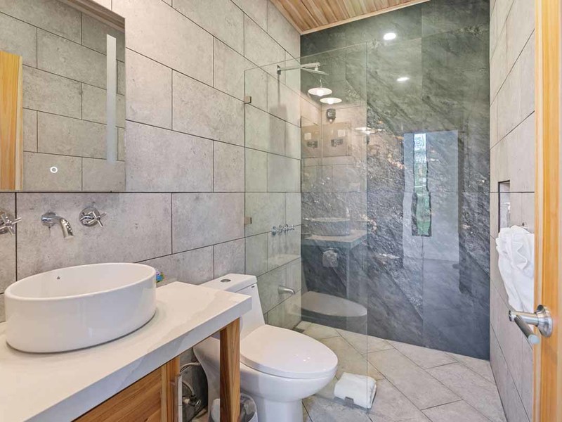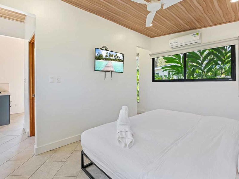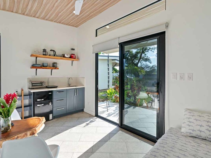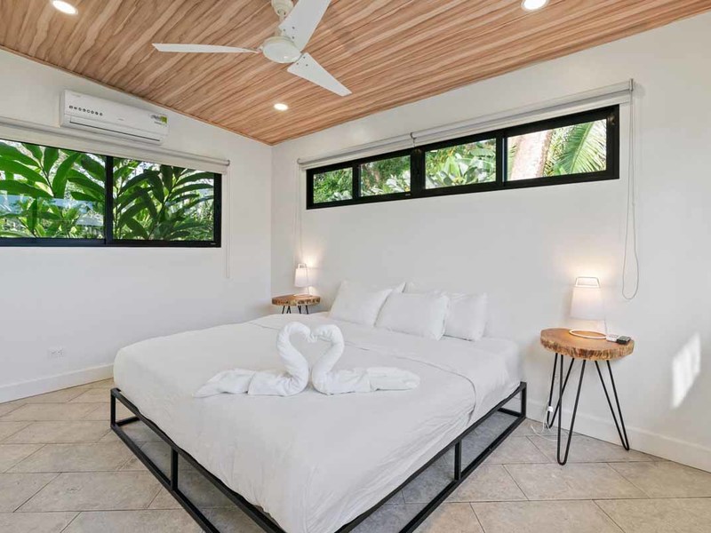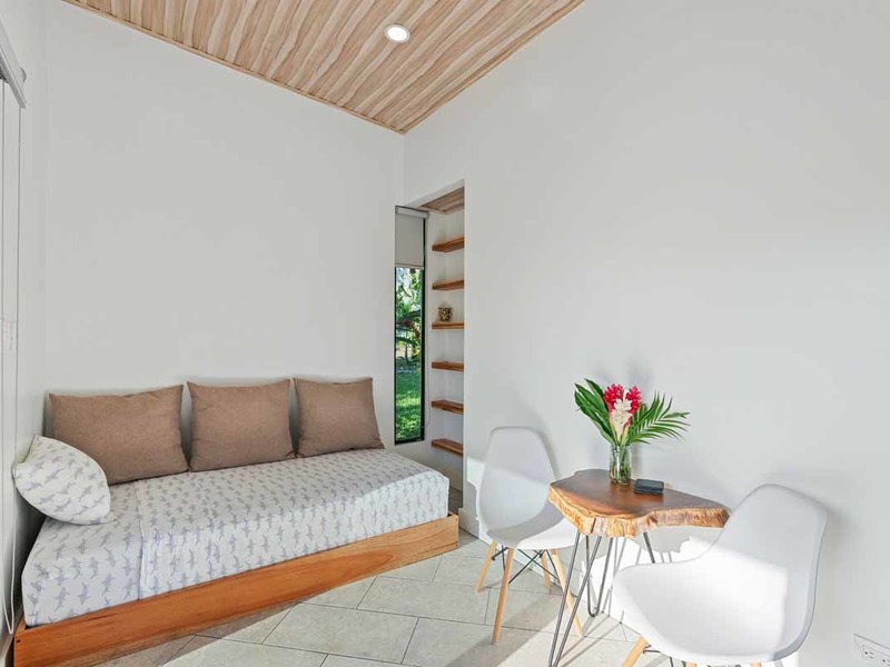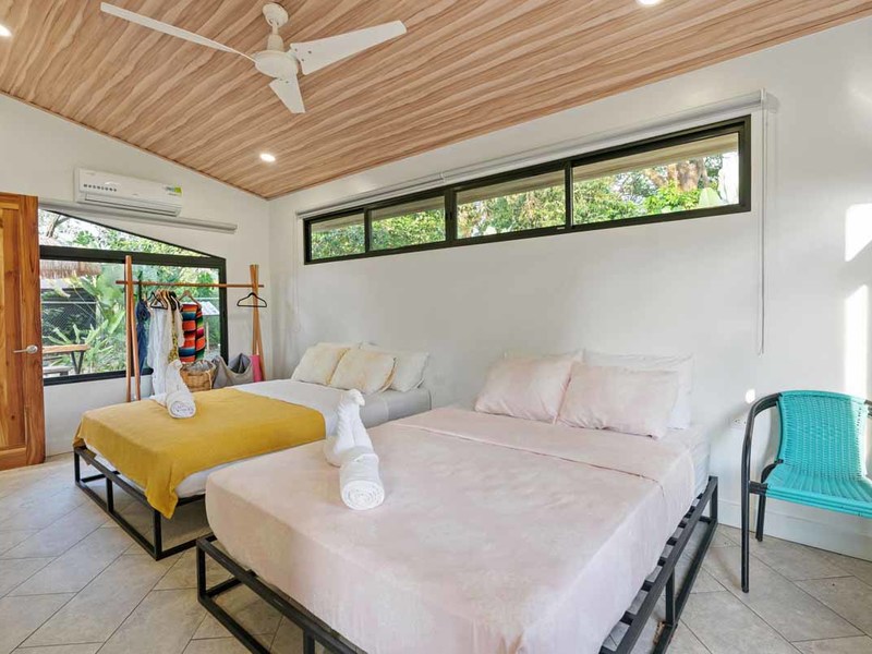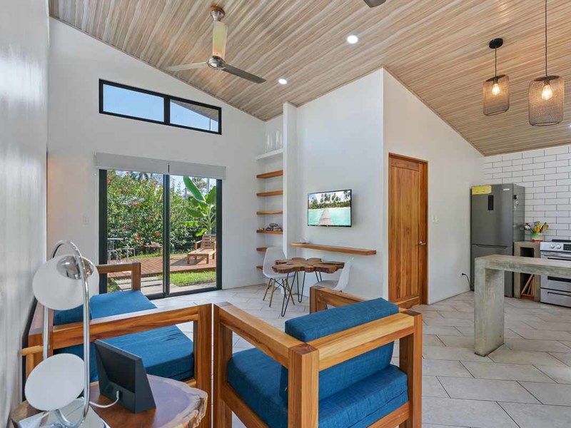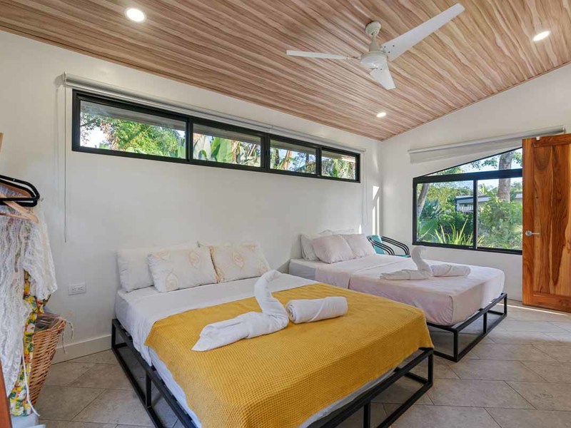 This property is located conveniently close to restaurants, shopping areas, and beaches in Uvita. It offers two 2 bedroom homes with air conditioning units, modern design elements such as granite countertops, and locally sourced doors, and shelving. Both of these homes have their own private patios that offer views of Uvita’s lush landscape. The two 1 bedroom rentals have similar features but are slightly smaller than the 2 bedroom homes. Additionally, there is a studio cabin, providing yet another unique option for guests. Other amenities on this property include a pool, a rancho area, and plenty of space to entertain or relax outdoors.