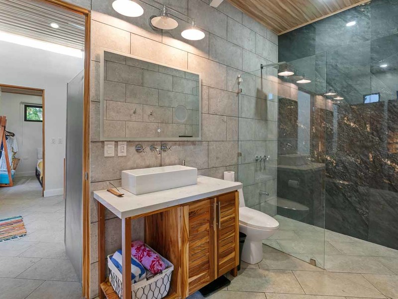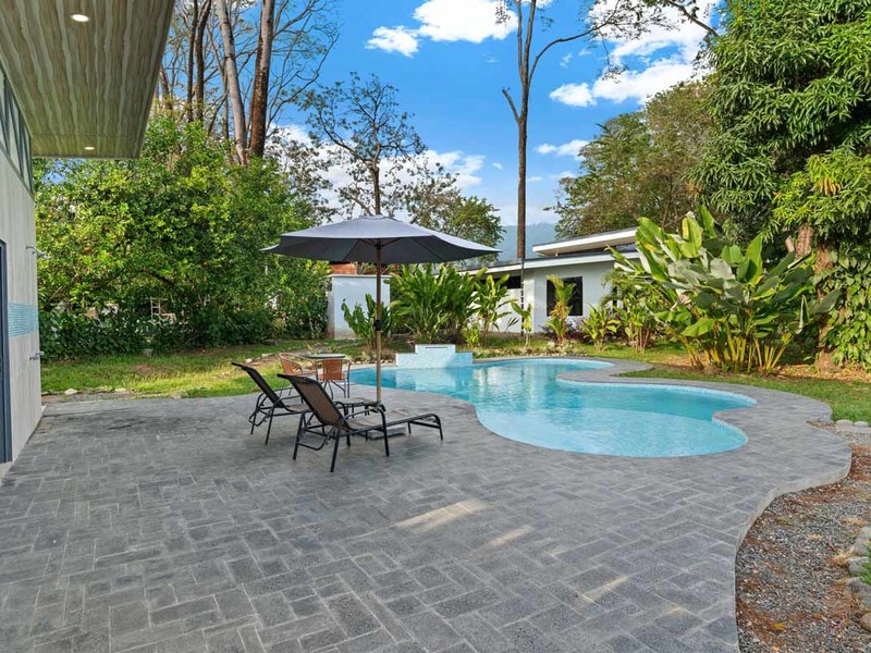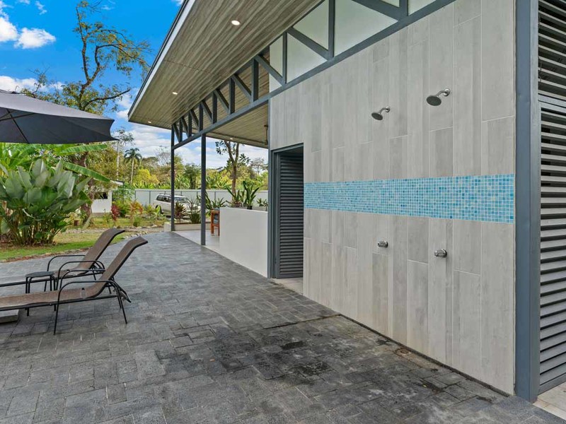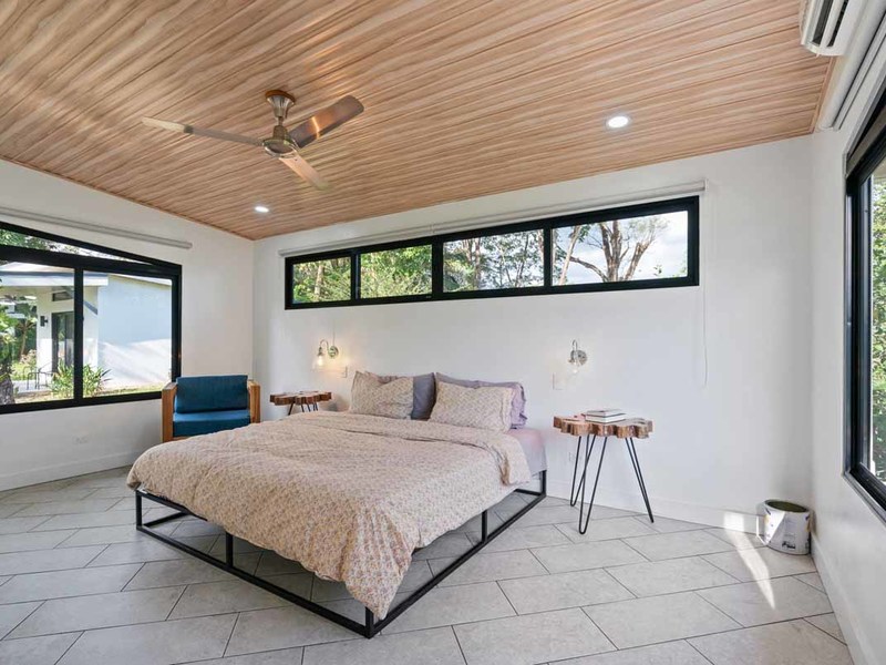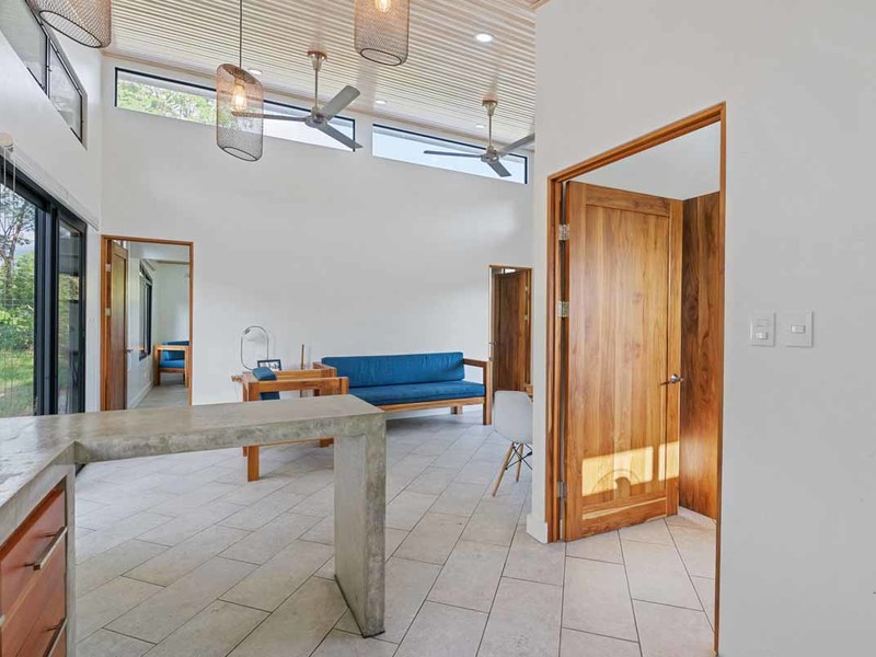 This turn-key property includes all necessary upgrades such as air conditioning and modern design features like granite countertops throughout all living spaces. All wood used for doors and shelving was locally sourced from Costa Rican wood artisans which is great for sustainability purposes as well as creating an authentic look for this property. Additionally, it is fenced off with an electronic gate providing added security for those living or staying here! It is also located conveniently close to restaurants and national park beaches ensuring that visitors can enjoy all that Uvita has to offer during their stay here!