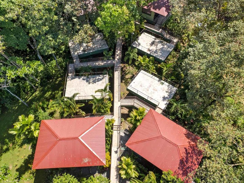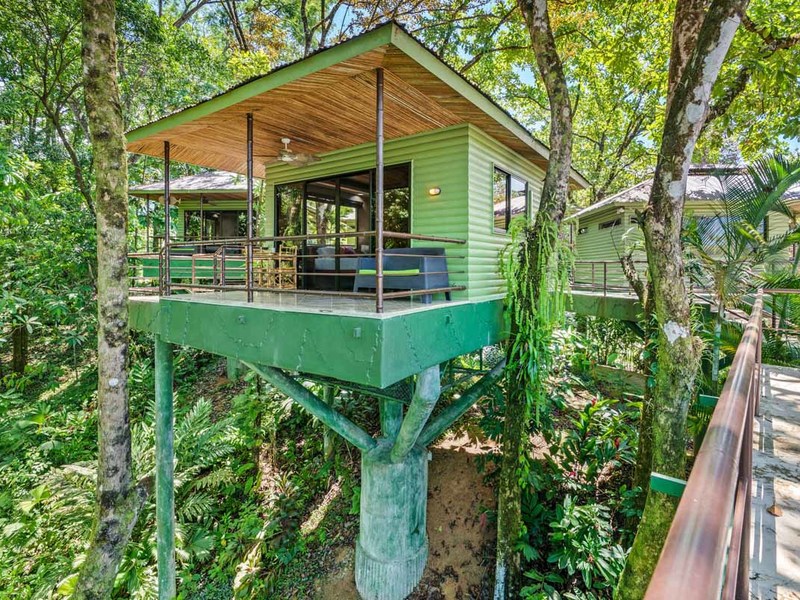 walkways are elevated 20 – 30 feet above the ground and nestled in the lush tropical rainforest. Each villa