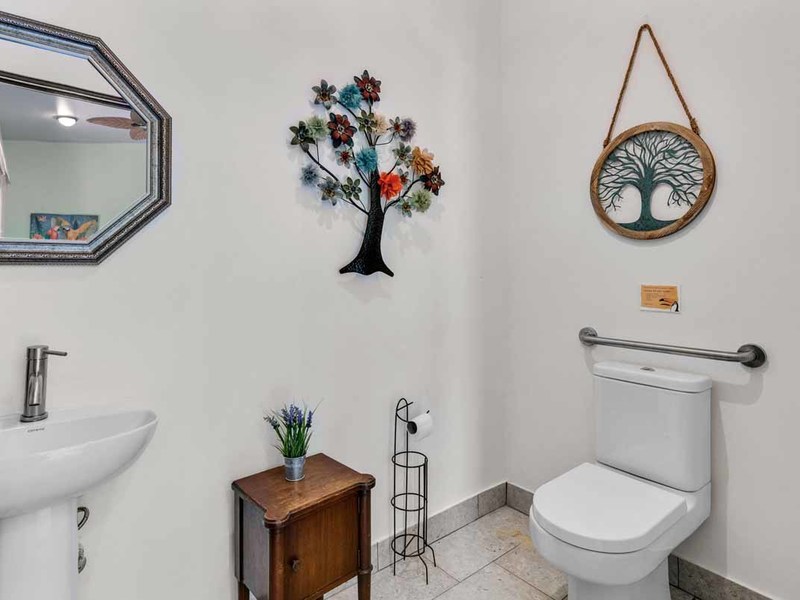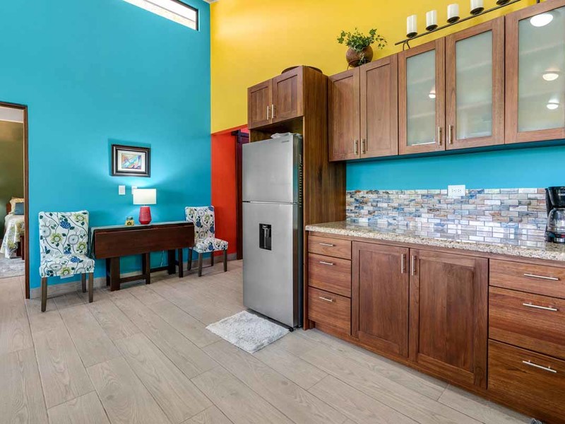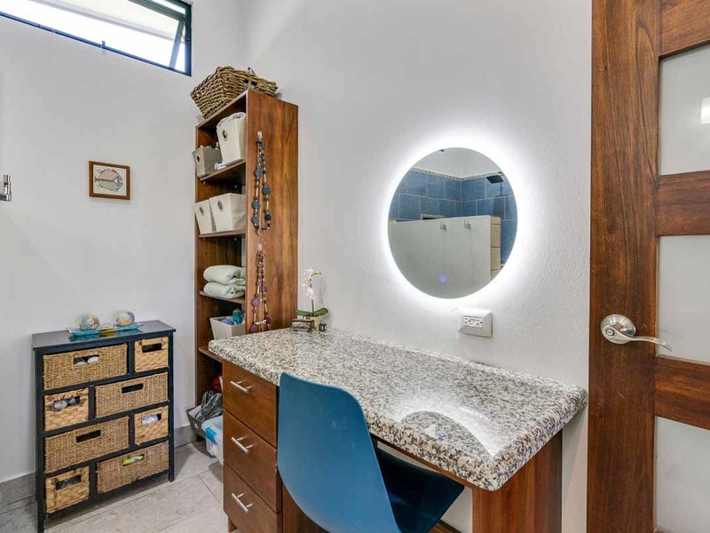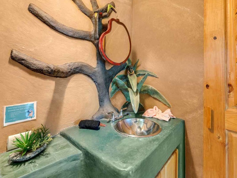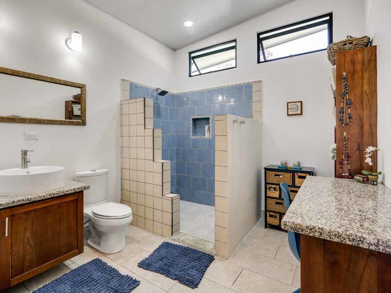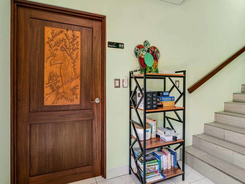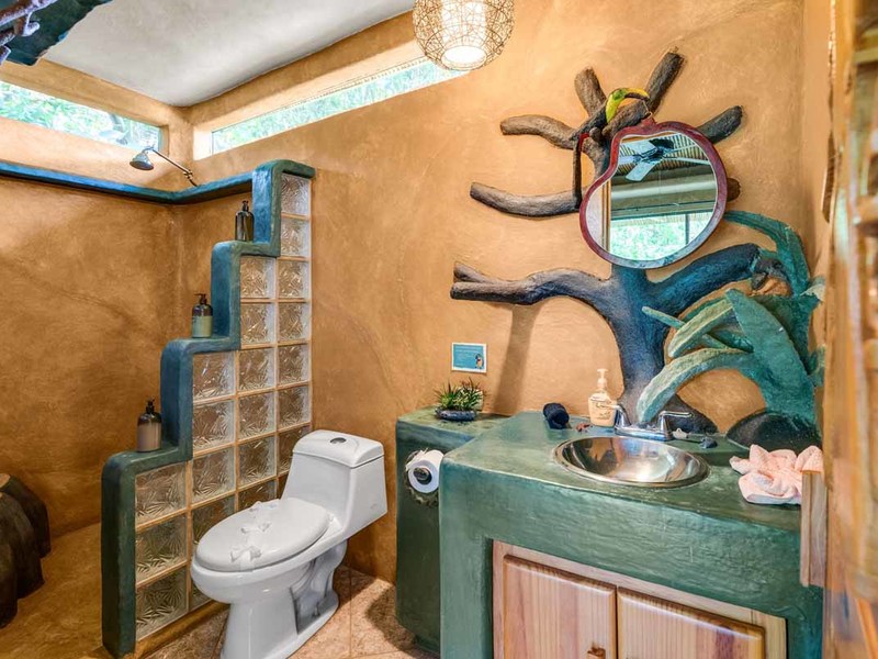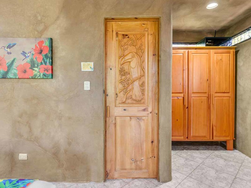 carved wooden doors along with special Costa Rican accents around the mirrors, sinks, and