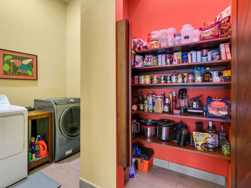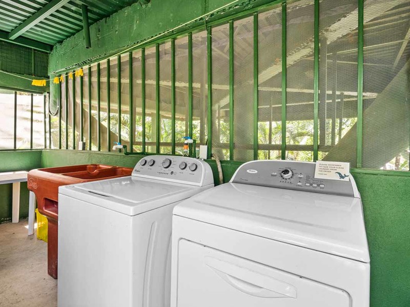 Below the elevated walkways through the tropical gardens, there is a laundry room for the guests