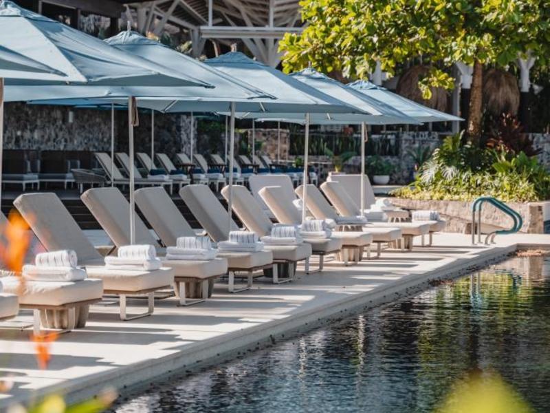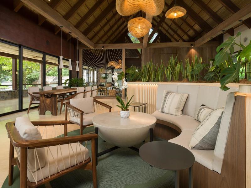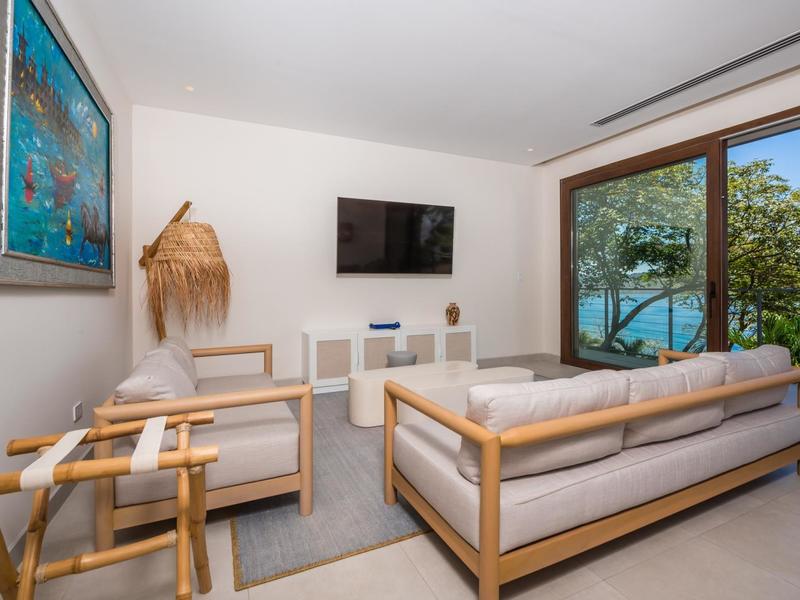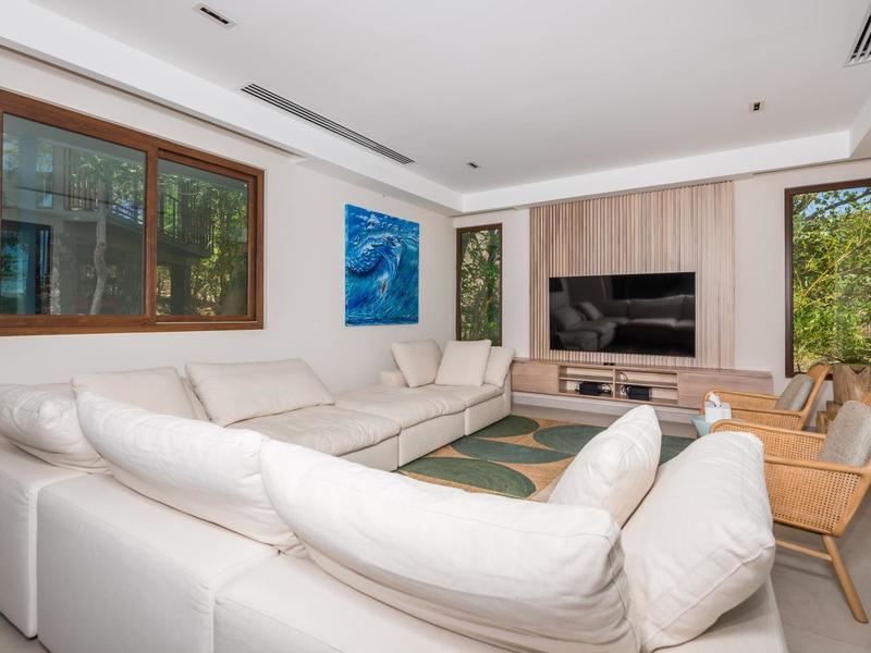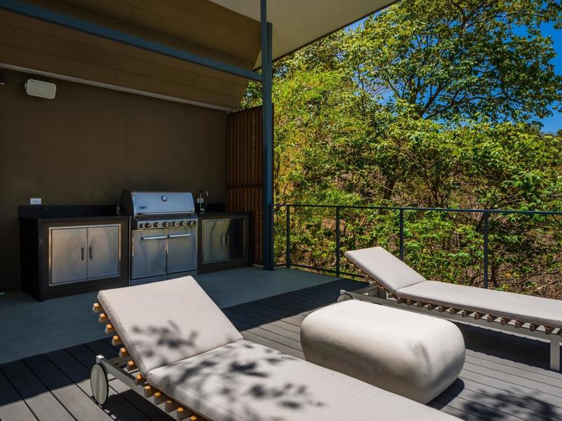 The home entertainment area is poolside, providing residents with a perfect place to relax and unwind with friends and family. Equipped with an elegant, high-end kitchen and sitting area with a TV, this spot is just the place to cook up a delicious meal or indulge in a movie night. The infinity pool and jacuzzi are also located just outside the entertainment module, providing residents with an oasis of serenity amidst pristine natural surroundings.