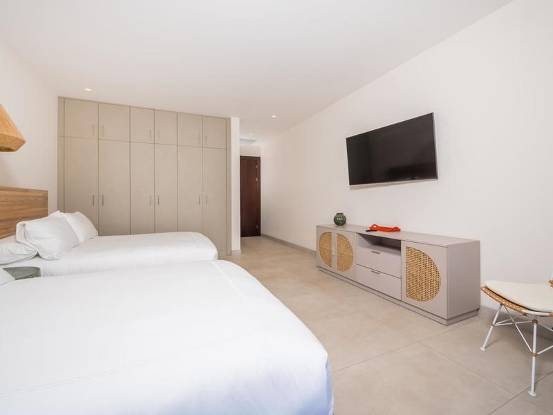 As you step into Villa Amar, you'll immediately be taken aback by the sheer grandeur and elegance it exudes. Spread across 4 spacious modules, this property offers a top-level module with a service kitchen, gym, and 2 bunk bedrooms with a bathroom. With two large sleeping quarter modules, each featuring 3 generous bedrooms with ensuite bathrooms and an oversized principal bedroom with a luxurious king-size bed, you'll be spoiled for choice when it comes to comfortable accommodations.