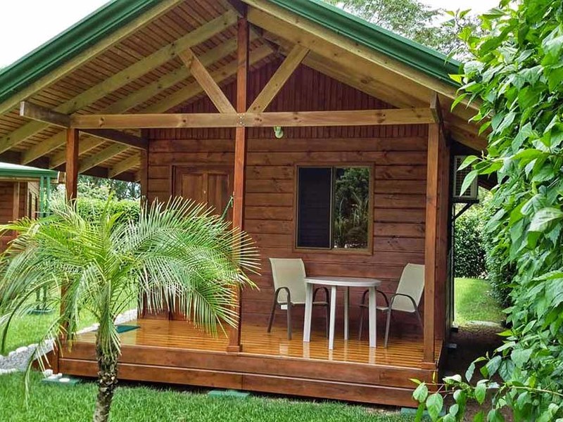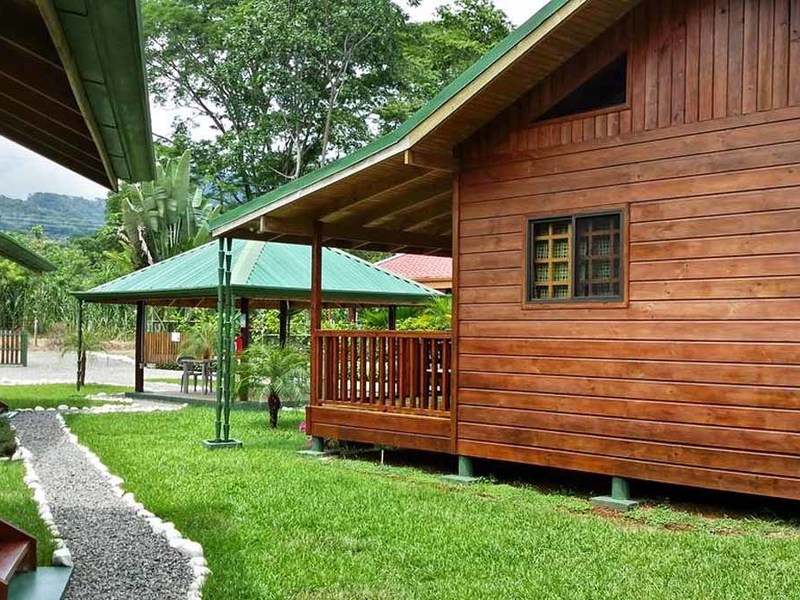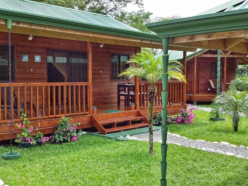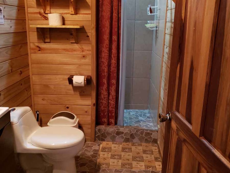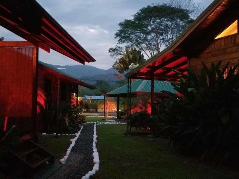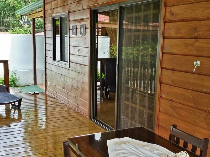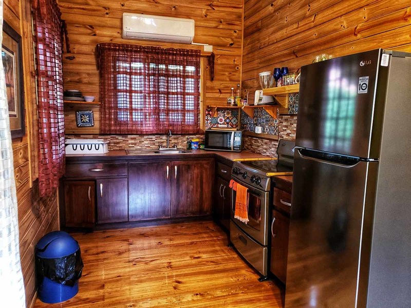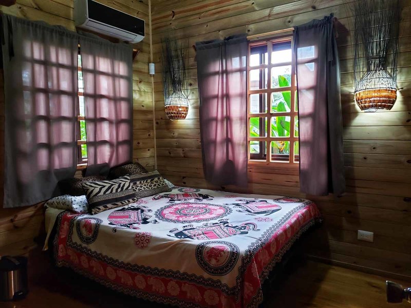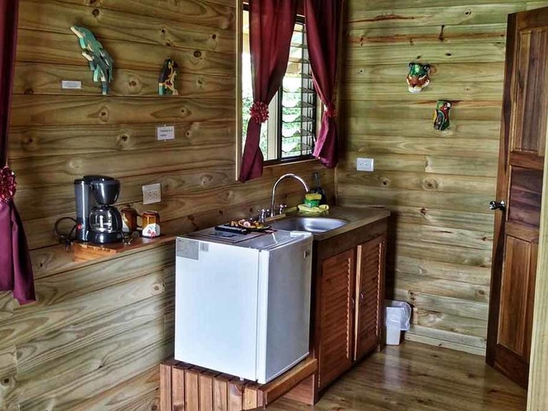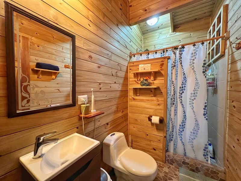 Nestled just below the Cascada Verde waterfall and above the Pacific Ocean beaches in Uvita, the well-established EL Paraiso Bed and Breakfast features a main 2-bedroom cabin, two studio cabins, and a mealtime ranchero. Built by Ecomedera in 2014, the original 25-year warranty is still active. The main 2 bedroom cabin features a kitchen and living room area as well as a full-length covered porch that runs the length of the home. All cabins feature Euro Queen beds, air conditioning, a private bathroom with modern hot showers, a coffee maker, a refrigerator, high-speed internet, flat screen tv, a wall-mounted safe box, and a front deck with both seating & hammock. There is also a covered carport with laundry facilities.