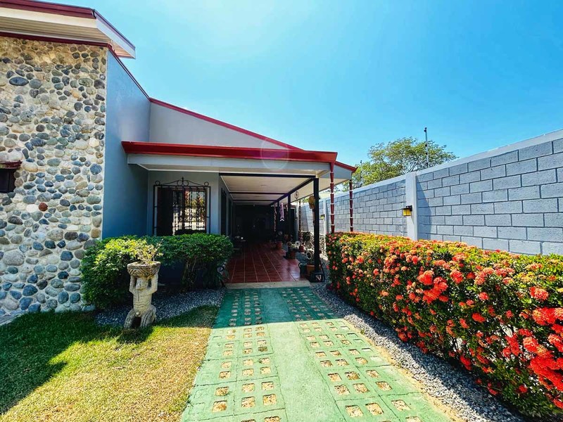 As you pass through the gate to the second adjacent property you are welcomed by beautiful river rock walls and a generous breezeway that leads to the main house and apartment. The main entrance to the home is on the left featuring an additional ornate iron security gate and a hand-crafted wooden entry door.
