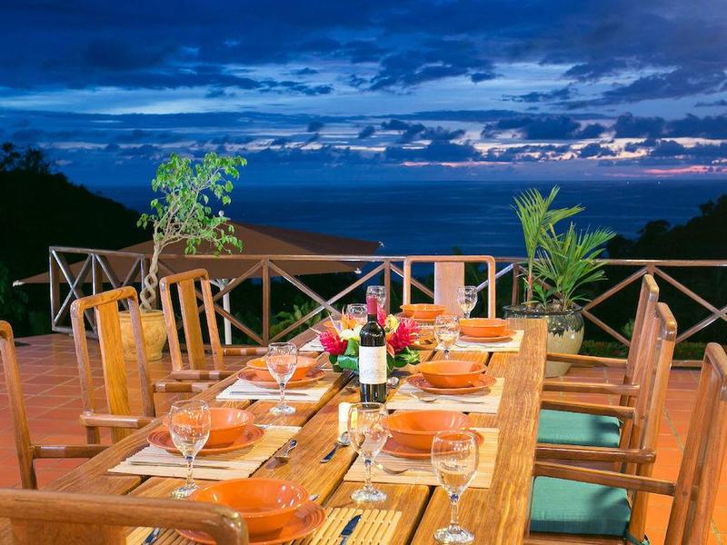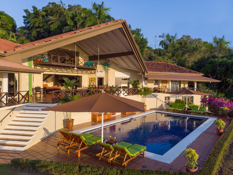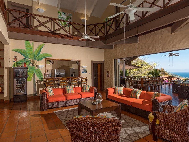 This large 9 bedroom Villa is comprised of four bedrooms which are all masters, each with King Size bed, high ceilings, spacious areas, with glass sliders allowing you to feel the fresh breezes off of the ocean. All bedrooms are air conditioning to keep you cool, large verandas to take in the panoramic views, and to see the monkeys and other various types of wildlife passing through the trees. The fifth bedroom features two queen beds and two single beds, air conditioning, a private seating area, and a veranda facing the jungle. The sixth bedroom has one king bed, air conditioning, and a veranda facing the jungle. The Casita consists of a 2 bedroom apartment, each with double beds and a 1 bedroom suite with a queen bed; the apartment has its own kitchen, living area, and incredible ocean-view patio.