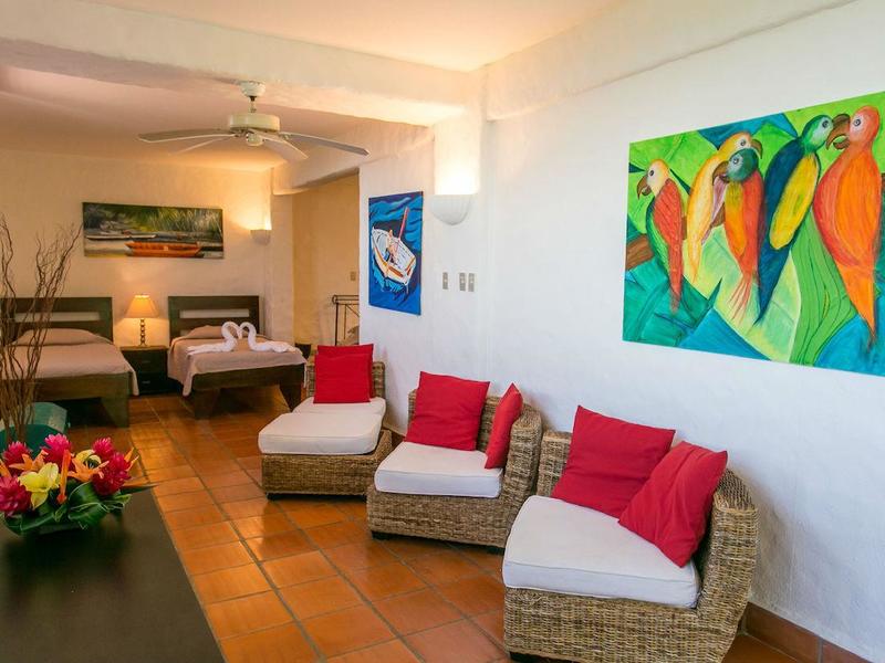 It is bordered by a lush rain forest – a symphony of wildlife. Monkeys run through the mango trees, and toucans sing from the nearby Trees. Birdwatchers and animal lovers will be in heaven. Within the surrounding gardens are mango trees, banana plants, starfruit, papaya trees, citrus, orchids, and a whole plethora of other tropical flora.