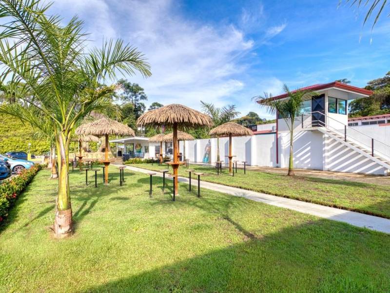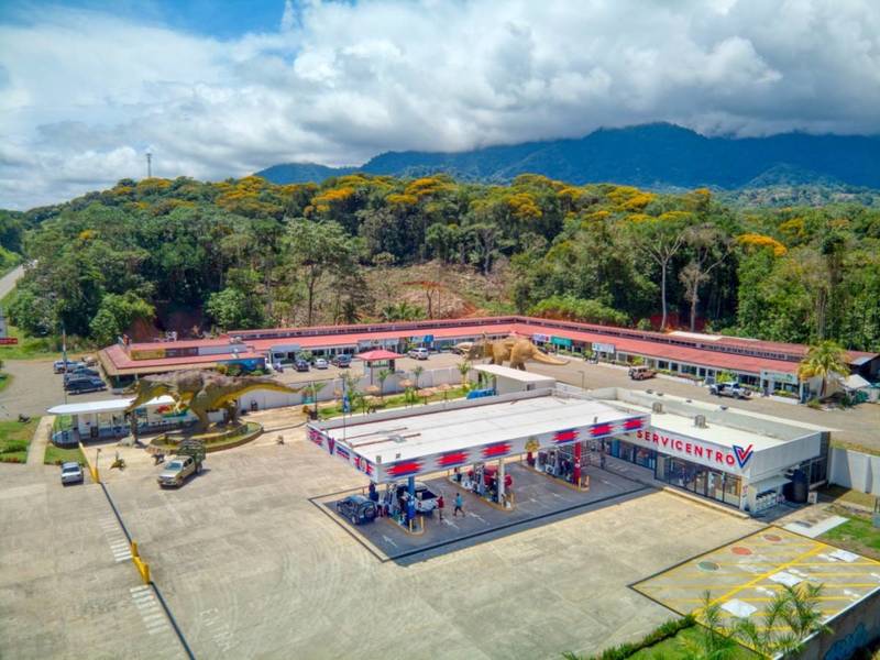 The turn-key operation is situated on a generous 3,447 m2 commercial lot, offering unparalleled visibility. While strategically placed signs guide travellers from Uvita to Palmar, the true allure lies in the captivating reproductions of Jurassic giants that adorn the property.