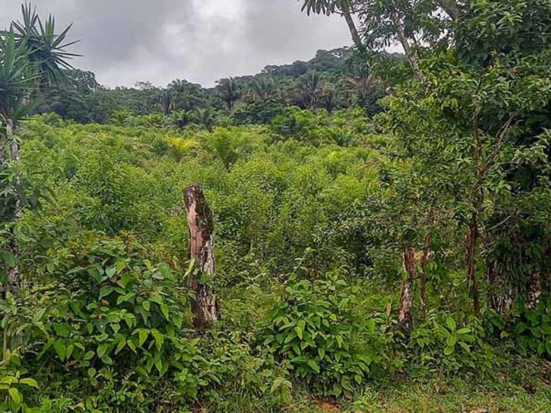 There are 125 acres planted in oil palm. This area consists of gentle rolling hills that provide the possibility of several natural building areas. Contrary to popular belief the oil palm is being grown organically chemical free. The palm trees can be selectively removed to create living spaces.