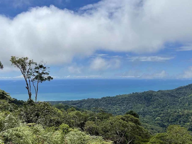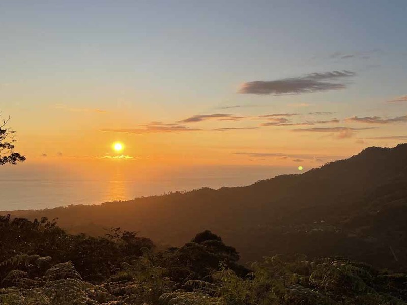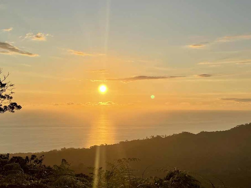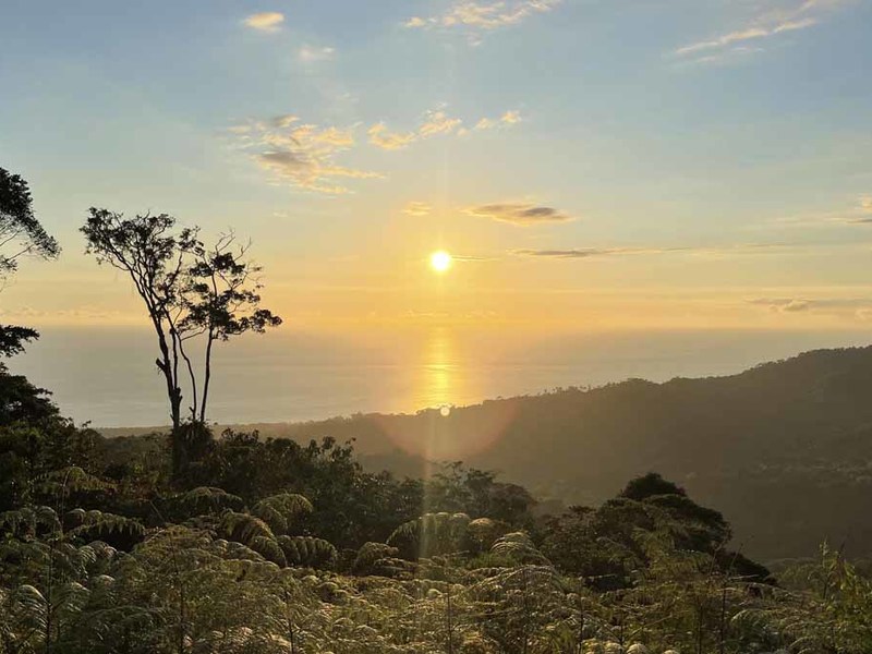The smaller lot starts at 4 acres and up to 7 acres. Every lot has a BIG ocean view, year-round sunsets, and panoramic Mountain Views, and is very private surrounded by a lush primary jungle between every property—great temperature at this elevation.