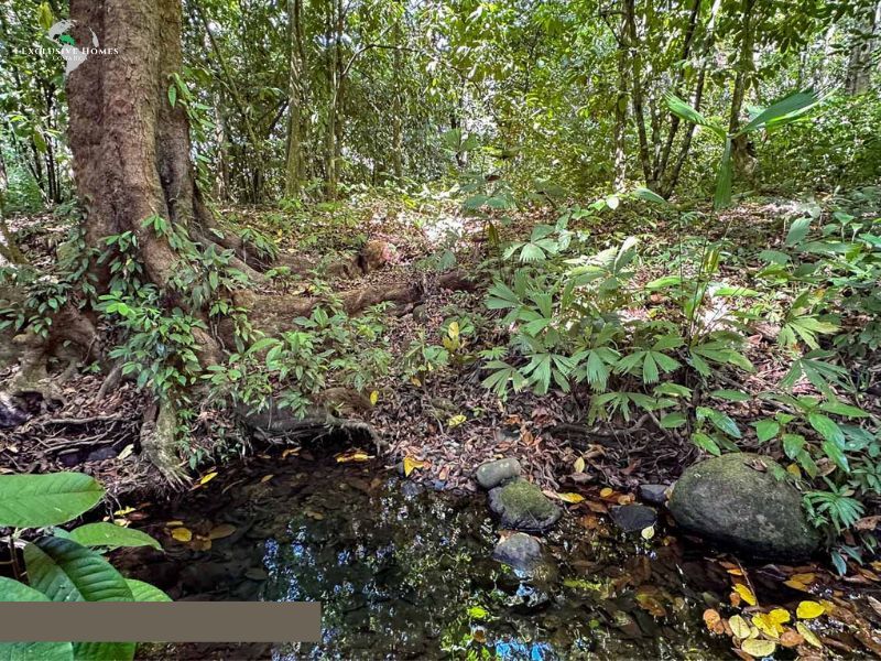 Inside the property, a smaller creek gently flows alongside the located area, for building a house. This prime location takes advantage of the captivating rainforest ambiance while allowing for the soothing sounds of the river to blend harmoniously with the serene chorus of jungle birds and wildlife.