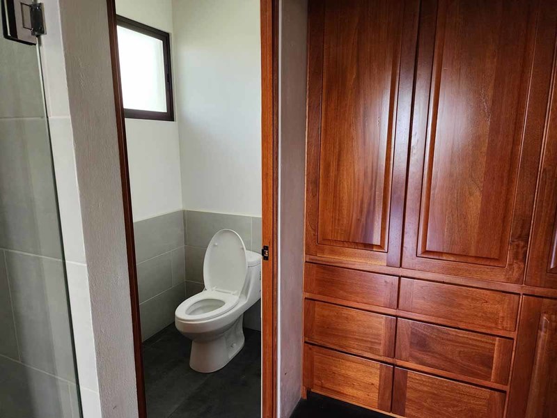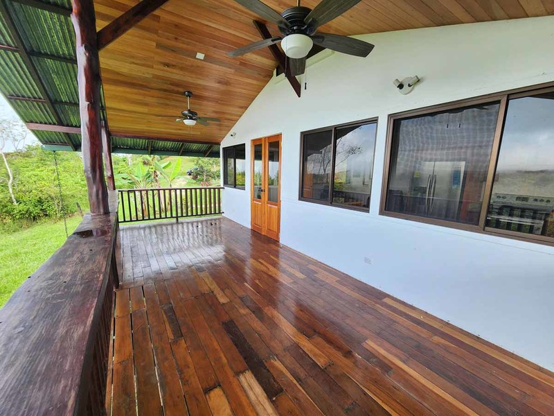 The property has ample space to either build additional bedroom(s) adding to the existing house, or you have space to add another house altogether. The back of the property looks up into the mountains above the Diamante Valley. The front of the property looks out over the valley toward the coastal mountains with the Rio Barucito rumbling below. With 2.4 acres, there is plenty of space for more fruit trees.