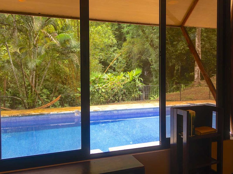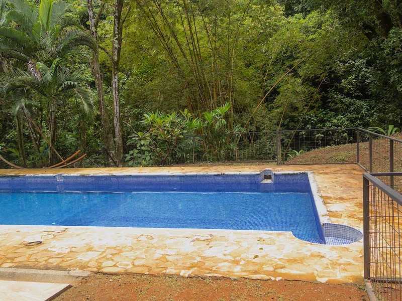 All utilities are currently in place including AyA public water, electricity, and high-speed fiber optic Internet. The cottage and swimming pool are fenced which is ideal for any pet lovers. One of the unique selling points of this property is the huge pool (approx. 14 m x 5m). And the best feature is probably the small waterfall right behind the pool. Imagine sitting in your pool or backyard and enjoying the sounds and sights of the waterfall. From the cottage, there are multiple trails down to the creek and further into the jungle. This really is an amazing place for somebody who enjoys privacy, nature, and wildlife.