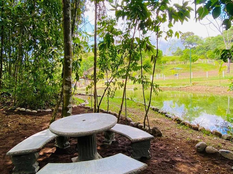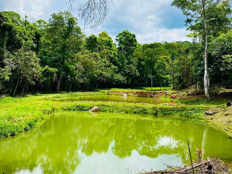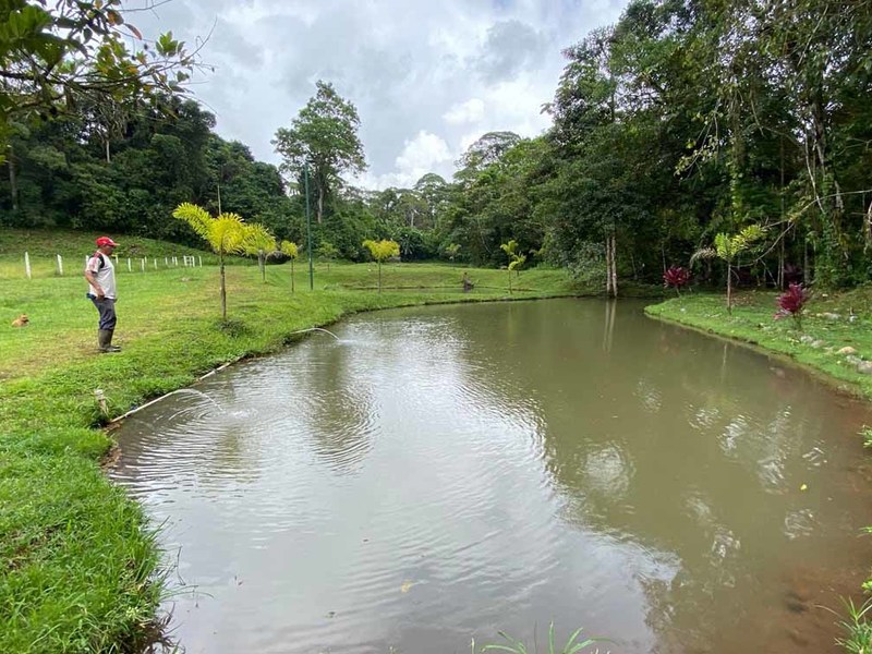 The property has 6 lakes, 3 large lakes that are filled with water from the springs, and 3 medium lakes that are filled with water from the river, all with the necessary permits. The turquoise water river that runs through the center of the property is medium size water all year round, with swimming holes, with a bridge that you can cross to go to the 3 large lakes and the mountain where there are trails to walk to see nature, animals, and the springs. There are many fruit trees already on the property And also a BBQ area next to the river to enjoy with friends and cook the fish.