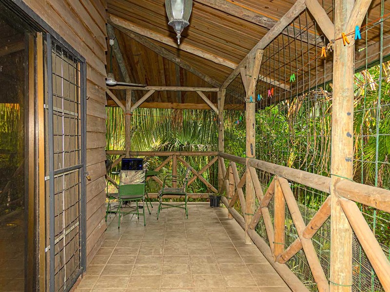 Two Chalets: Each chalet offers one bedroom, bathroom, and a Kitchenette; both have a wraparound covered veranda on two sides with fantastic jungle views.