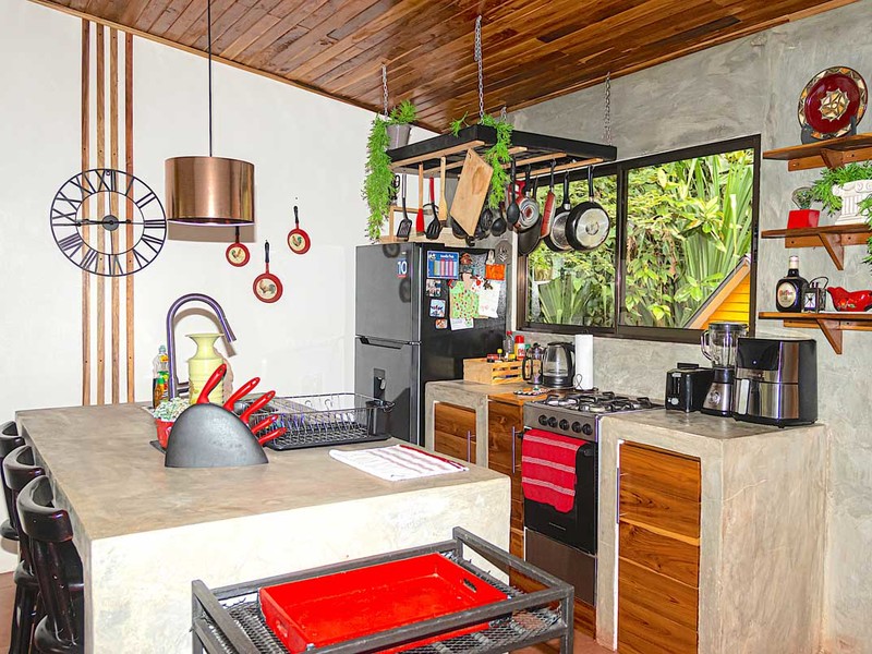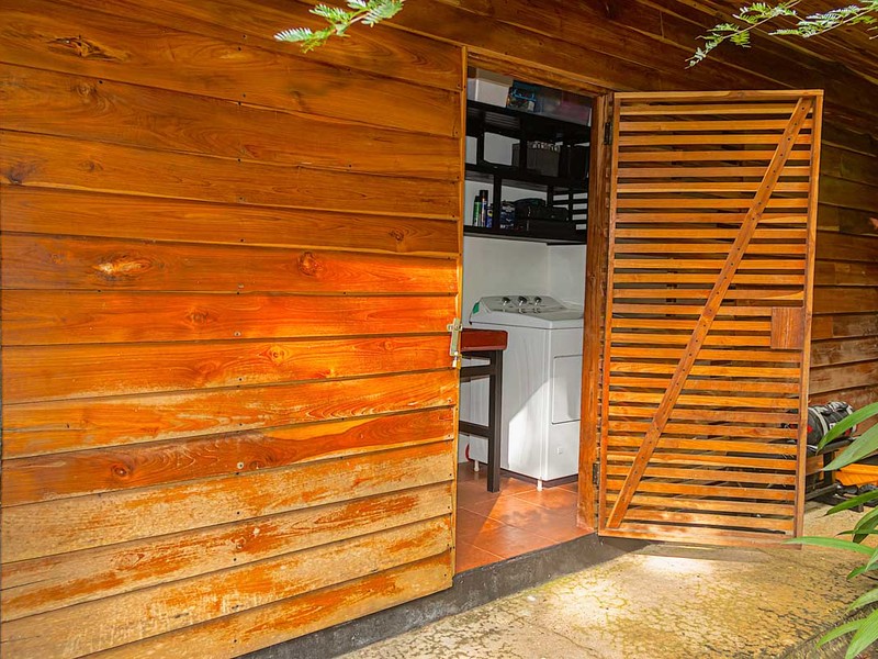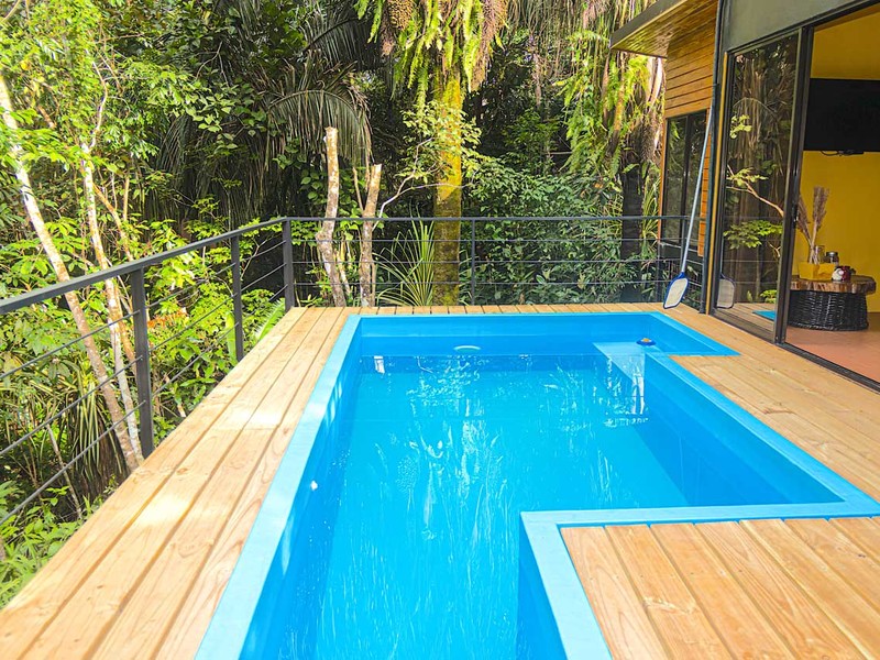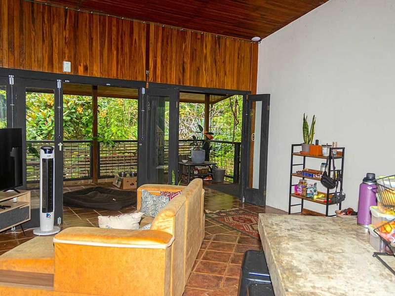 This one-of-a-kind property is perfect for someone wanting to earn an income while living high amongst the rainforests. The main house, just recently built, has a beautiful modern kitchen with new appliances, two bathrooms, two bedrooms, a living room with spectacular jungle views, and large glass sliding doors leading directly to the pool and deck area. Also, the laundry room is located outside the house.