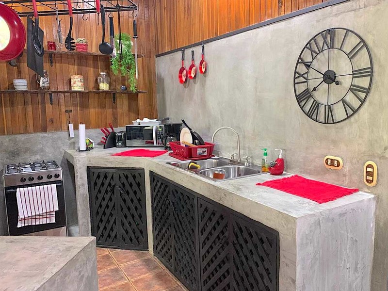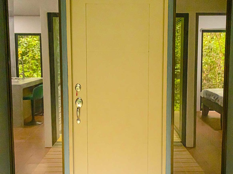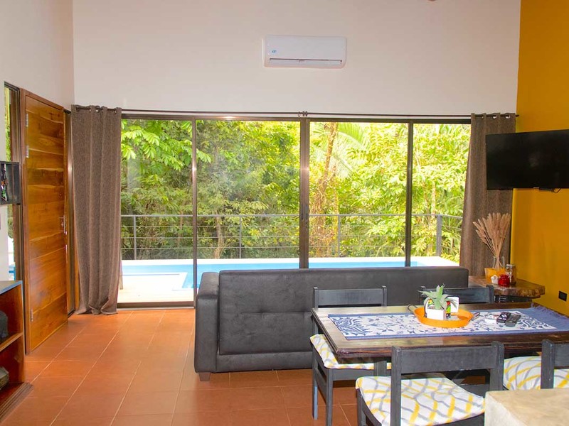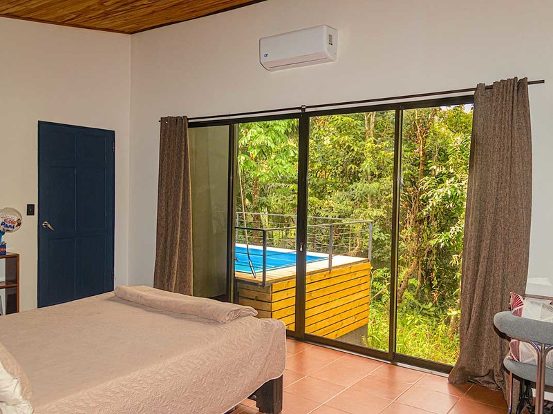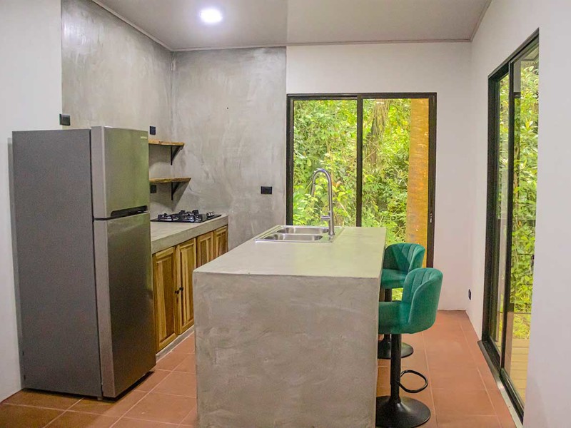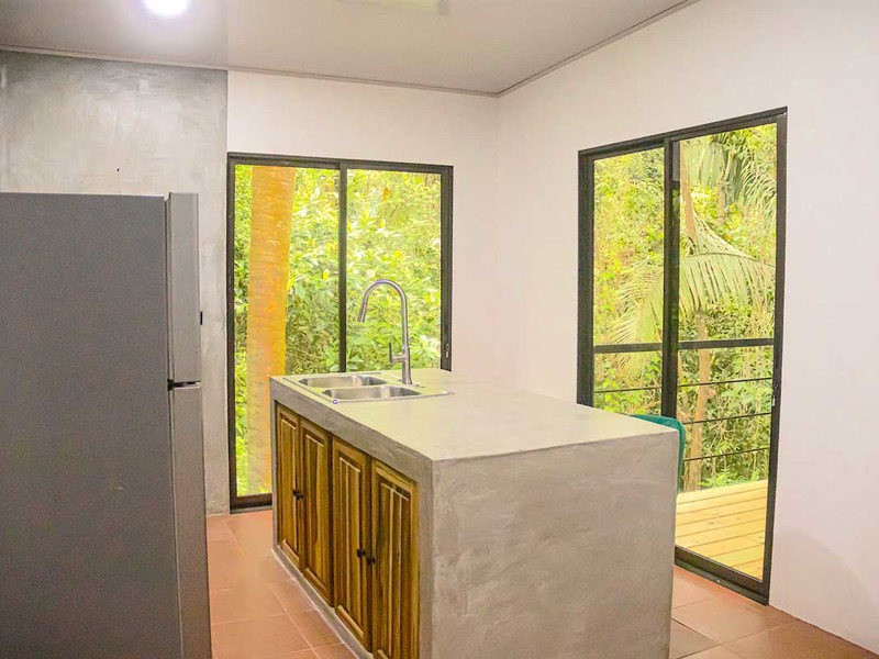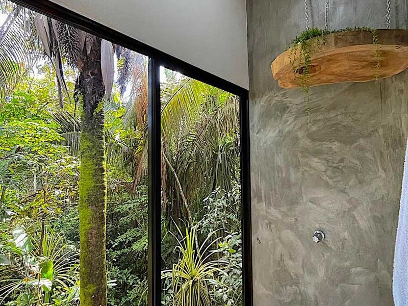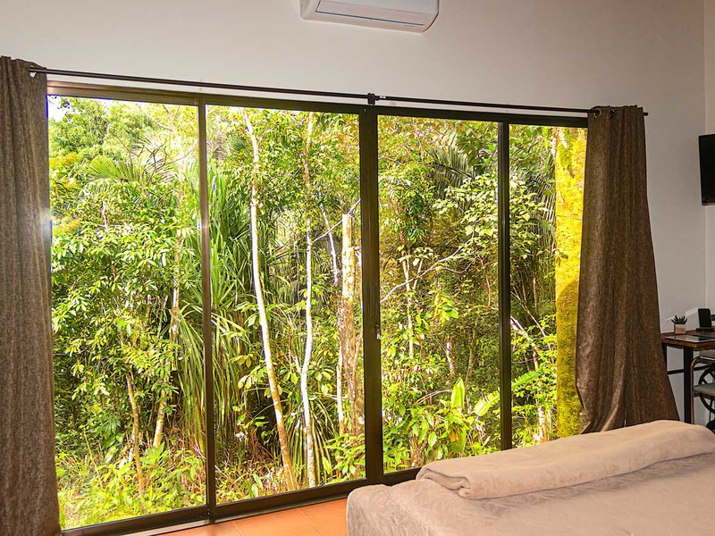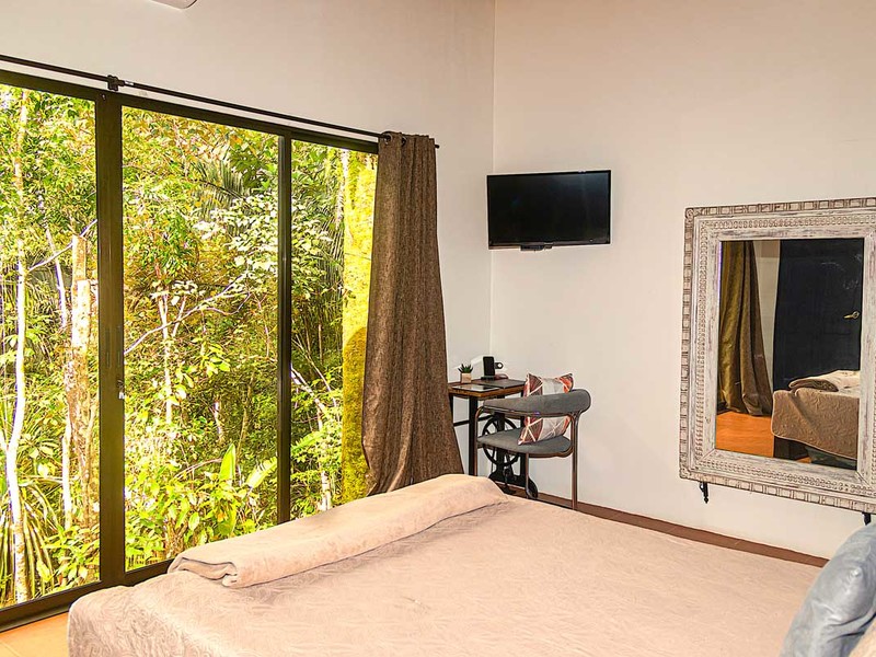 The new villa: The owner has just completed the construction of a new villa with two bedrooms and two bathrooms, partially furnished, with air conditioning, large glass windows, and sliding doors to enjoy rainforest views. This villa has a separate gated driveway/entrance with an automatic gate.