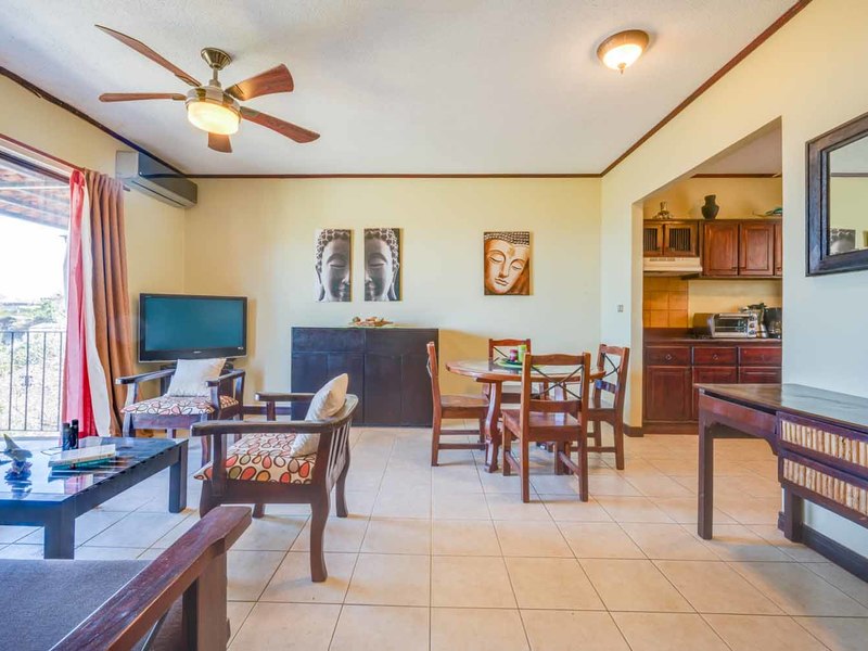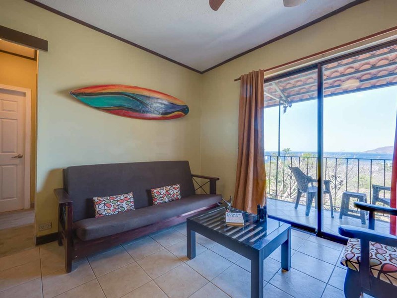 Welcome to Sunset Hills #10. This 2 bed 2 bath condo offers 900 sq ft of living space with panoramic ocean views over Tamarindo and Playa Grande. Upon entering the unit you are greeted with an open concept living space and kitchen offering some of the best views that Tamarindo has to offer. The master bedroom is furnished with a queen bed, is western facing. Imagine waking up to the sounds of birds and monkeys in the jungle below, and the scenic views of the ocean on the horizon! The guest bedroom is located on the eastern side of the condo and is also furnished with a queen bed. Both master and guest bathrooms have been updated with polished concrete and tile which gives a modern and tropical feel. This oceanview condo comes fully furnished and ready to enjoy! Sunset Hills #10 is a short 5 min walk to the golden sands and vibrant downtown that Playa Tamarindo has to offer!