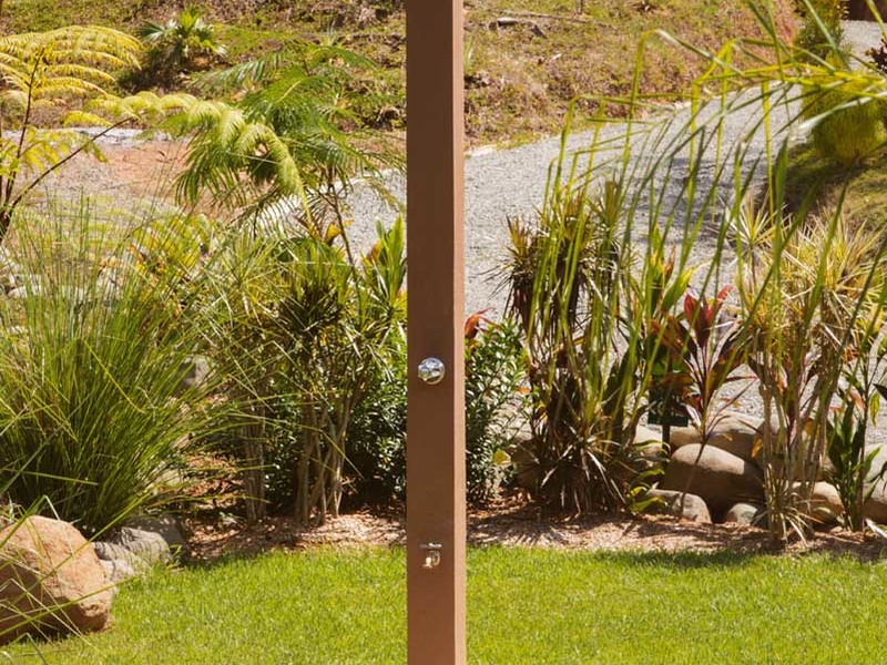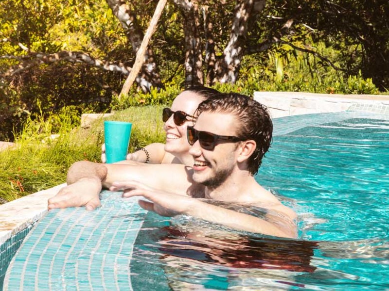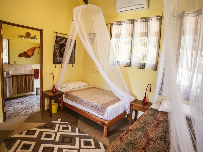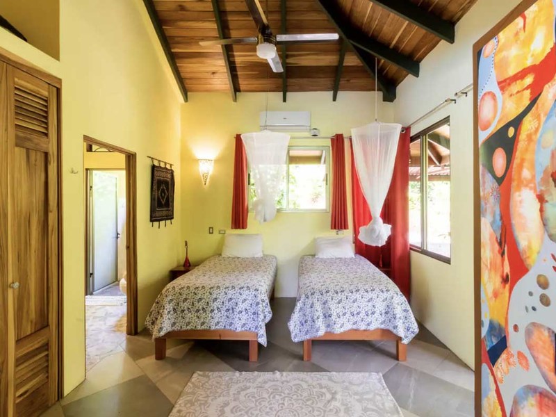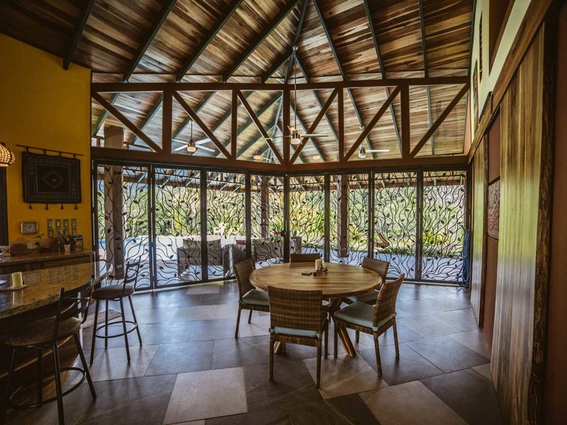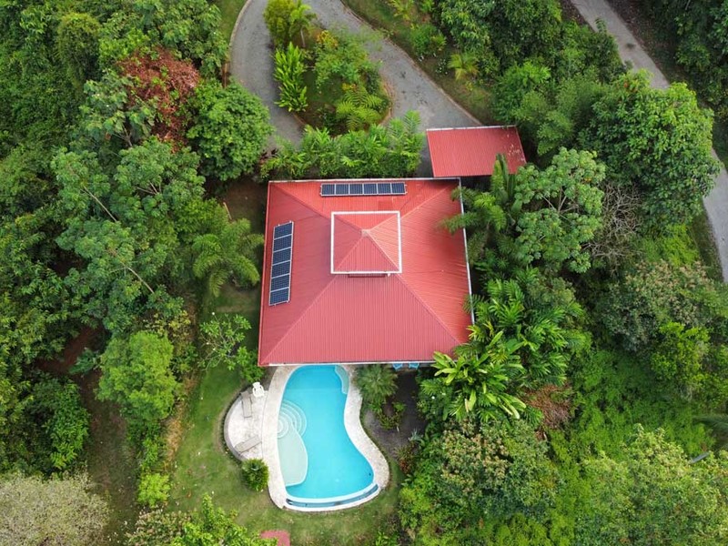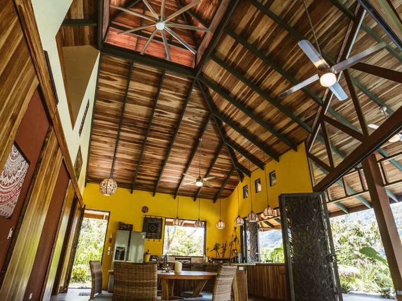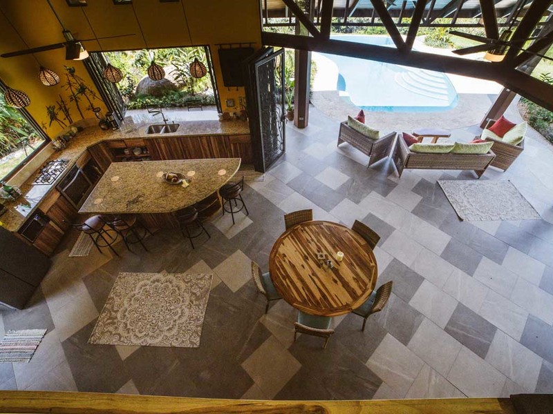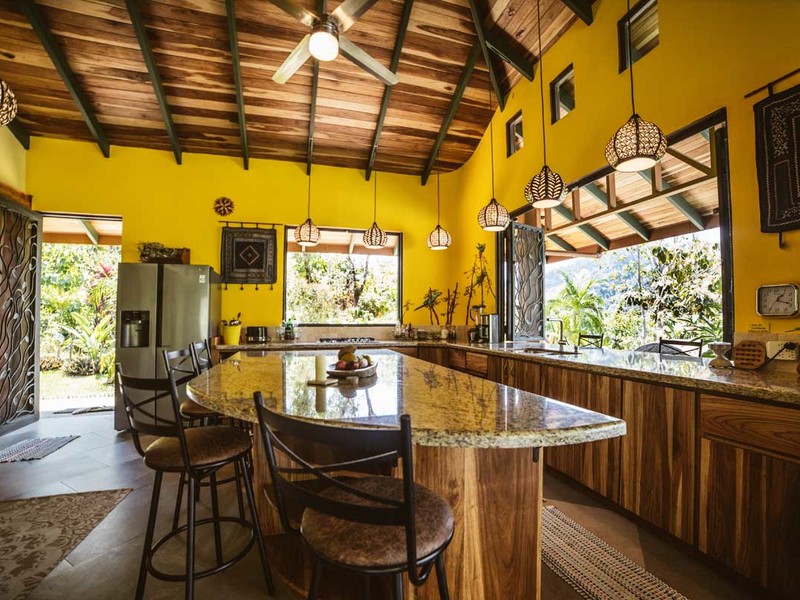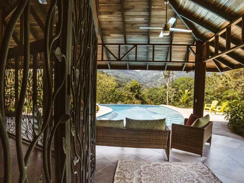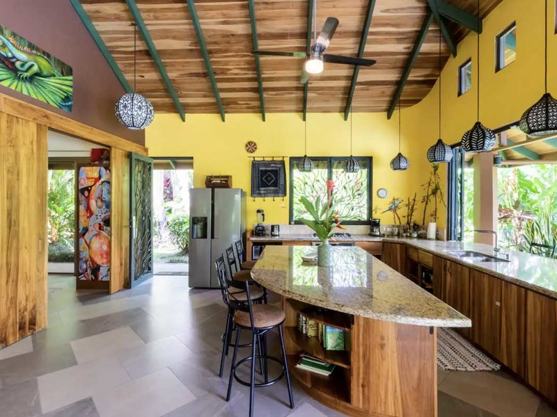 Both bedroom suites boast en suite facilities with open-air showers, live edge laurel wood sliding panel doors, and built-in closets. Each suite offers a private sanctuary where you can unwind after a long day exploring all that Costa Rica has to offer. The property is installed with on-demand hot water heaters, and solar panels for reduced electrical costs, and even boasts access to a hidden waterfall and swimming hole along the creek which borders the property. With all of these luxury amenities, Casa Loro Verde truly offers the ultimate in high-end living.