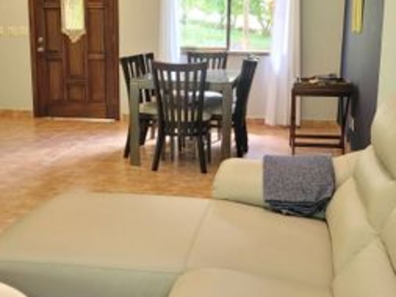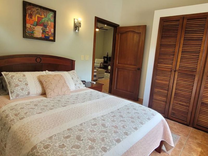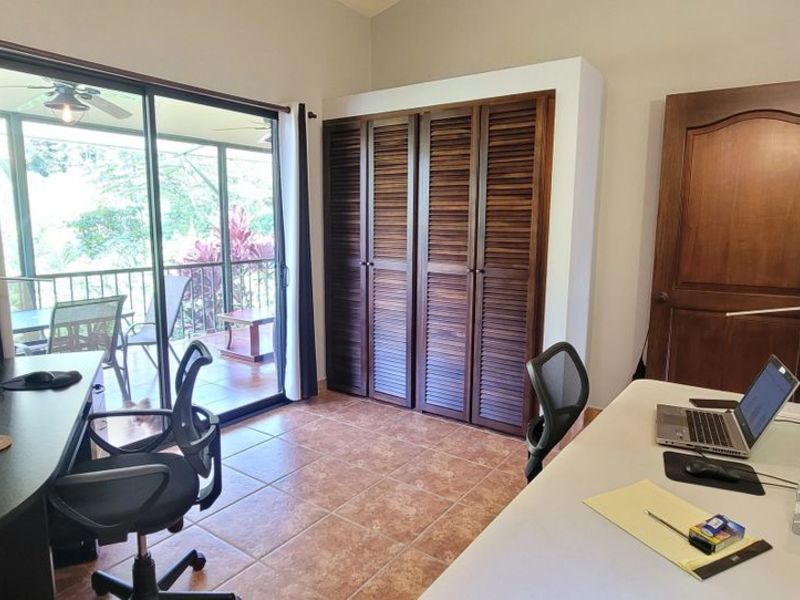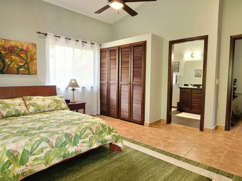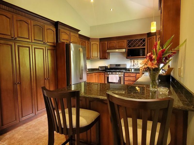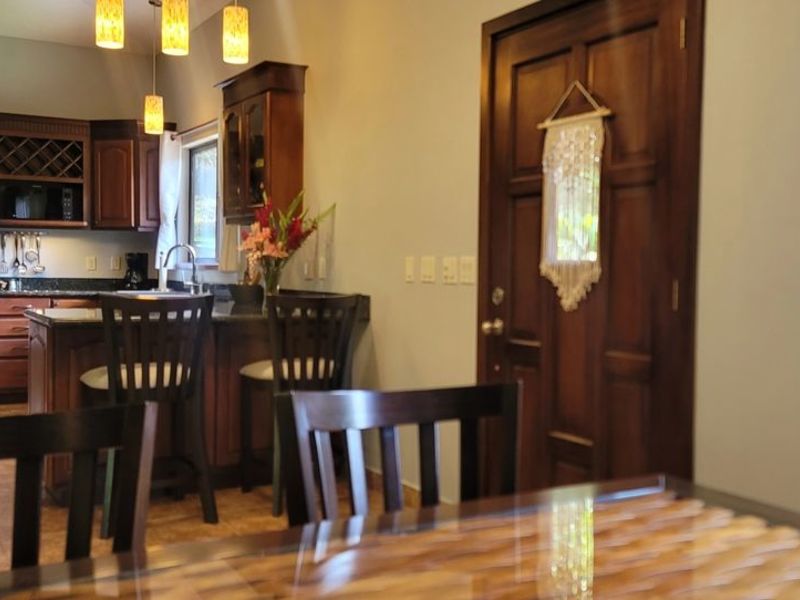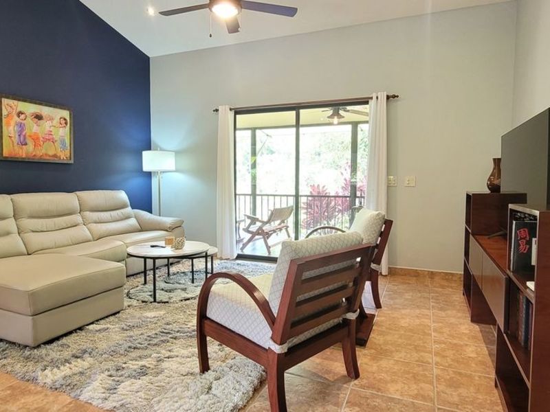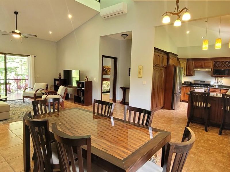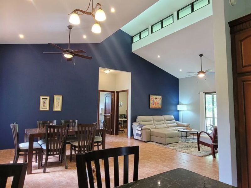 Nestled in the hills of Costa Rica is the beautiful community of Toucan Valley, home to 35 villas on 700 lush acres. Residents have access to a variety of amenities in this serene area, including a sparkling pool, community center, bar, and restaurant. The newest addition to the community is an incredible 3-bedroom villa that has been tastefully decorated with modern touches and traditional elements that reflect the beauty of its setting. As you enter the home, you'll be impressed by the grand high ceilings and clerestory windows that let in natural light. The current owners have been living in Toucan Valley for over 10 years but are now looking to sell due to health issues.