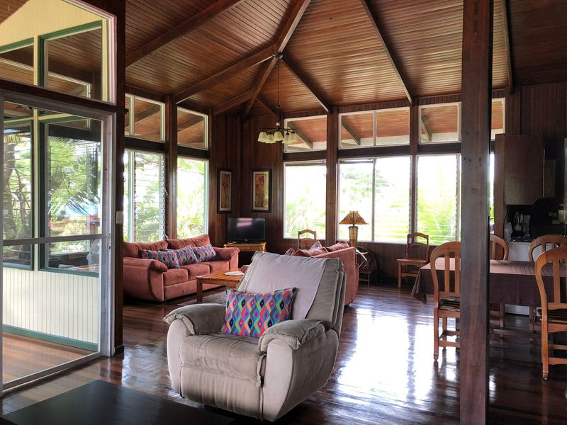 As you step inside, the large and spacious layout welcomes you, creating an inviting atmosphere for family and friends. The residence offers not only a comfortable living space but also stunning views of the surrounding mountains and a glimpse of the serene ocean.
