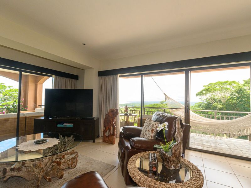 The gorgeous Las Vistas condominiums are Nativa’s centerpiece development, located atop the resort’s highest hilltop with stunning views of the coastline and Tarcoles River. This luxury condominium occupies the coveted south and west-facing corner of Tower A and enjoys premier sunsets and 180-degree ocean, river, and mountain views. The spacious 220 mts.2 layout has two central air units, is fully furnished and features two master bedrooms, one with an ocean view, as well as a den/office with a pullout sofa, and 2.5 baths.