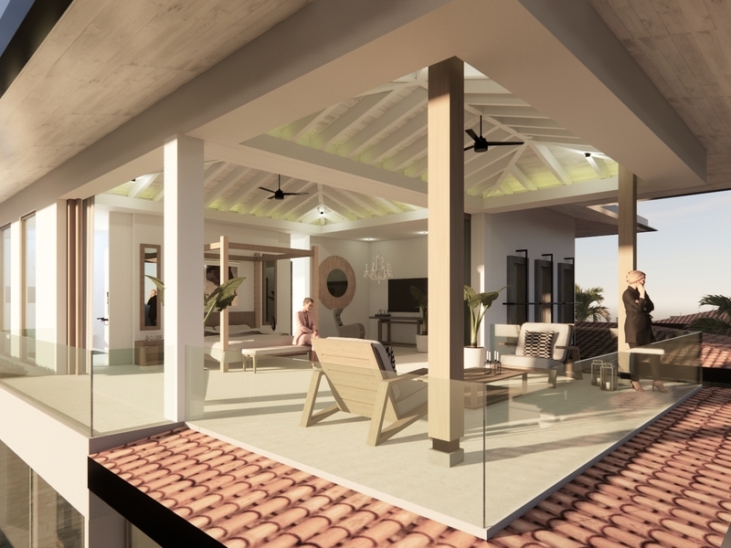 Each of the three master ensuite bedrooms features a unique design and ocean and jungle view. Each master bedroom features a canopy bed with a handcrafted wooden bed frame. They all have walk-in closets, private terraces, and the bathrooms come with rain showers and soaking bathtubs. It feels like you have your spa right at home.