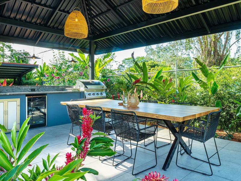 From the moment you arrive at this one-of-a-kind home, you'll be struck by its stunning beauty, impeccable design, and outstanding amenities. The professionally landscaped yard is an oasis on its own, with a variety of tropical delights, edible plants, and gardens bursting with colours. The stunning covered rancho is perfect for hosting guests and entertaining, with a built-in grill, mini-fridge, wet bar, and artisan table, making it the perfect setting for memorable gatherings. The kidney-shaped pool sits in the centre of the entertainment area, adding a touch of luxury to the already magnificent property. Soak in the sun on the luxurious, high-end wicker sectional couch or unwind under the comfort of the covered patio bed.