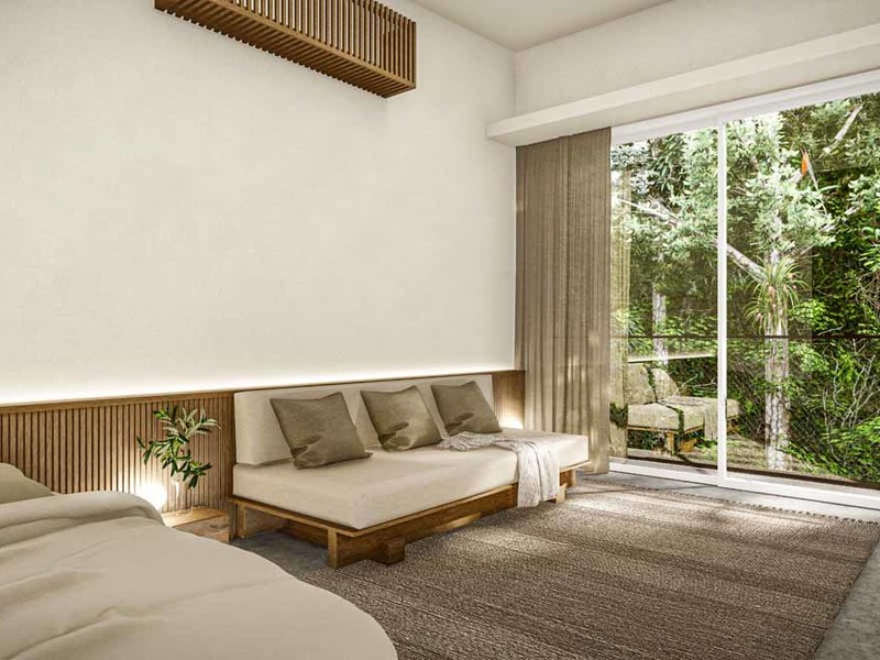· Sunken Japanese-style living room, providing an uninterrupted view of the canopy