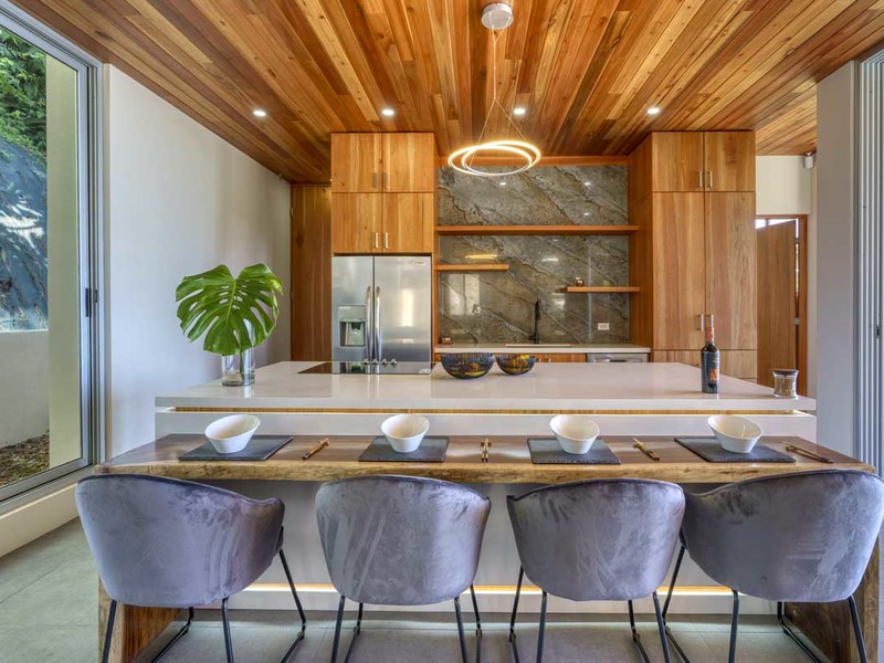 The design of Casa Sulit is a work of art, crafted by renowned builder Ben Morris. Morris used locally sourced materials such as wood and stone to create features that perfectly harmonize with the property's natural environment. Every room in the villa has been meticulously designed to offer breathtaking panoramic views of the Pacific Ocean and the unspoiled jungle surrounding the property. Attention to detail is evident in every aspect of this stunning home.