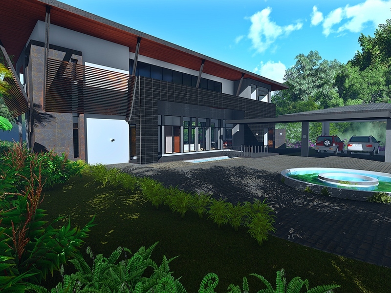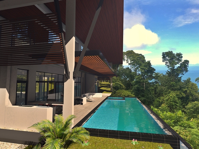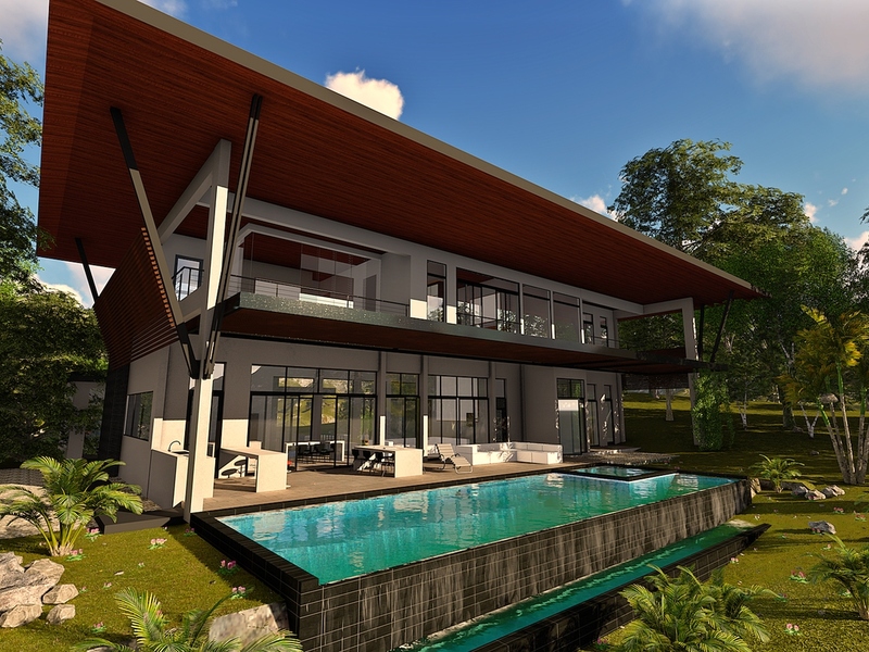 This 3,500 sq/ft tropical contemporary residence will feature four spacious ocean-view master suites, with the largest one boasting a generous terrace and a retractable corner wall, offering a stunning panoramic view of the Pacific Ocean and the lush rainforest-covered mountainside. Each suite is thoughtfully designed to ensure the utmost privacy for four adult couples, with the first-floor master suite conveniently accessible for differently-abled individuals.