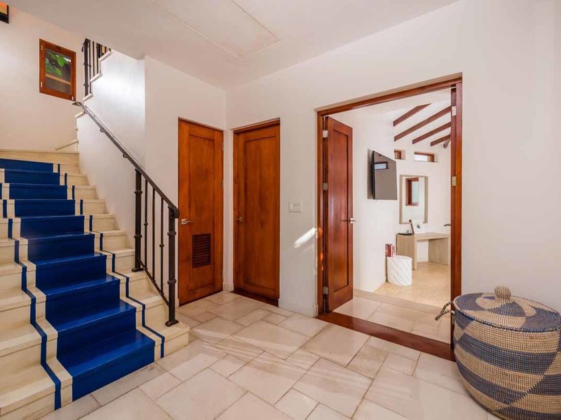 25 Paseo Del Mar is a 3160 sq ft, 4-bedroom, 3-bathroom home in the fantastically designed Las Catalinas. All around you are homes in sun-washed colors with wrought-iron railings and clay-tiled roofs. Outside your door are cobbled streets, fountains, and gardens. Inside your home are white-washed walls and vaulted, wood-beam ceilings, and coastal décor with splashes of Mediterranean blue.