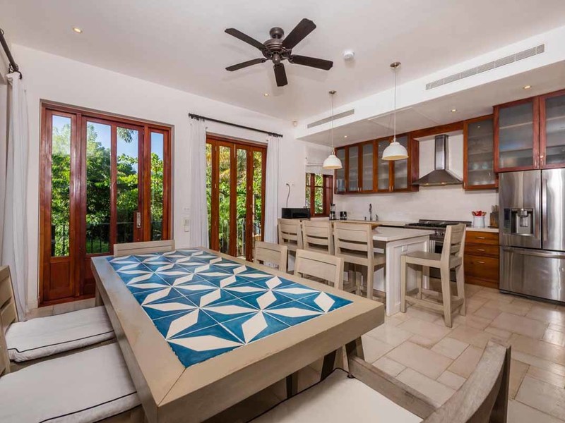 Enjoy dinners with family and friends prepared in the fully-equipped kitchen with its custom wood cabinets and spacious island with lots of seating. Serve your visitors at the dining table with its hand-painted tile surface and comfortable seating. Everywhere around you are tall French doors leading to shaded terraces and balconies. Just across the grand entranceway is the living room—a perfect family gathering place. Your home has 3 beautifully appointed bedrooms, each light-filled and tastefully decorated for lazy afternoon naps. Each bedroom has its own bathroom done up in natural wood and stone finishes.