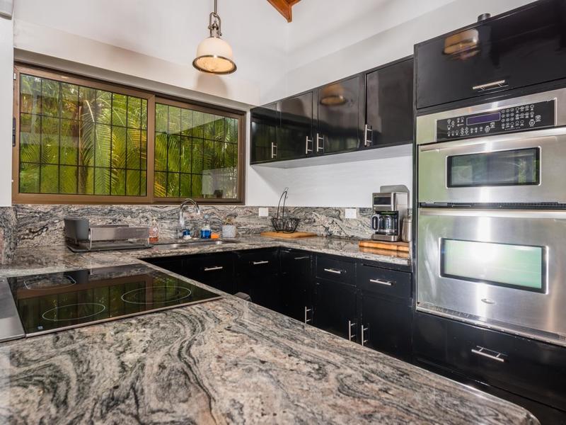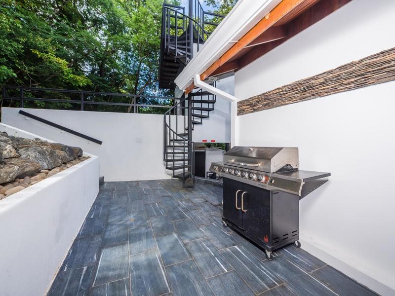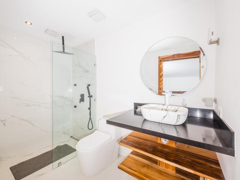 This 4 bedroom, 3000 sq ft home, features an open concept main room where the kitchen, living area, and terrace unite encouraging fresh ocean breezes and plenty of natural light. Facing North East, the sunrise is one of the many spectacles that is witnessed daily from all living spaces and bedrooms. Situated to avoid heat retention, air conditioning is optional with the fresh ocean air cross-ventilation. The master suite is located on the main level, peering over the private cove with jaw-dropping views over the Pacific Ocean. Supplied with a king bed, modern decorations, and direct access to the terrace, not a detail has been spared in this retreat. Continuing down the exotic Cocobolo wooden stairs, you are greeted with two large bedrooms with en-suites. Both suites offer tasteful style, high-quality furniture, and direct access to a secondary private terrace. The private apartment is posted on the front side of the property, with access only a few steps below. Designed as a studio and serving as a wonderful flow space, this unit could be used as a guest suite, vacation rental unit, or smart and slick office space. Just above the apartment, a rooftop terrace has been added. Sunrise coffee, sunset happy hour, and star gazing all come to mind with this spectacular space. On the street level, you will find a large two-car parking space and a bodega. Perfect for storing away your beach toys and tools.