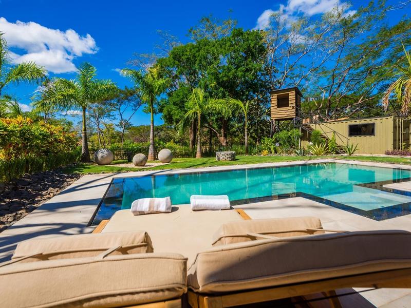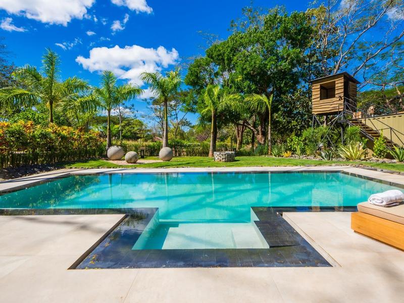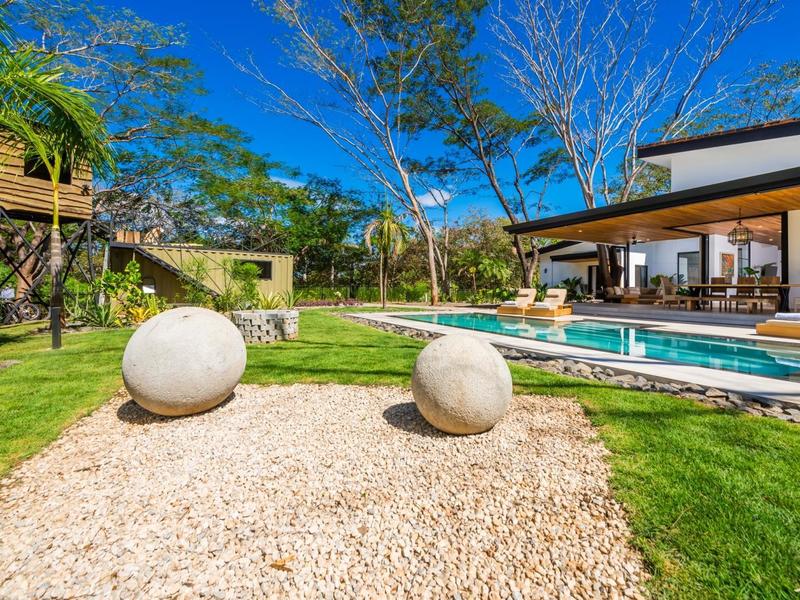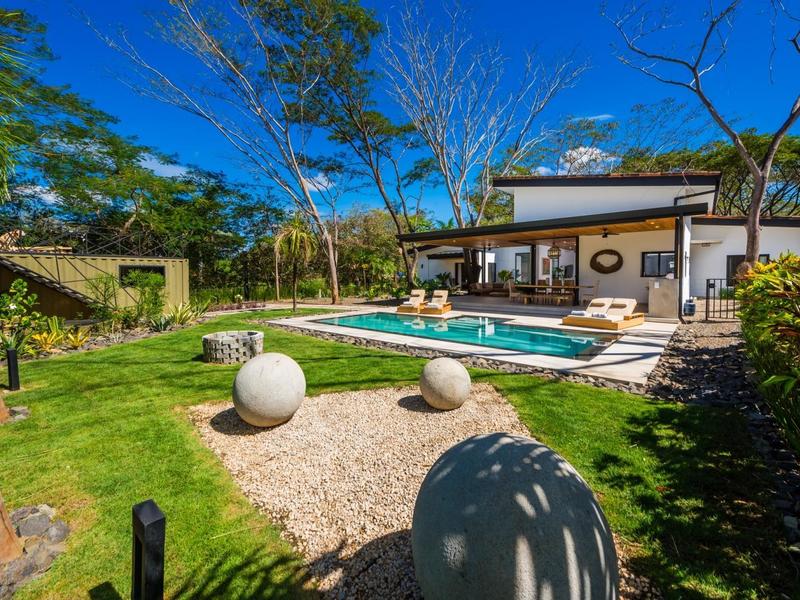This incredible home is located in a cul-de-sac in the gated community of Rancho Villareal, a quiet neighborhood just a few minutes from the popular beach community and surf town of Tamarindo. This community offers 24-hour security, a Community Club House with a large pool, a jacuzzi, an entertaining area, and fabulous hiking trails through forest land. It is a short drive to a few ex-pat schools. Villareal has everything you need for shopping and dining out, and it is the perfect location from which to explore the beaches up the coast to Playa Flamingo and down the coast to Playa Junquillal.