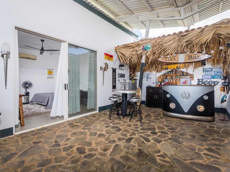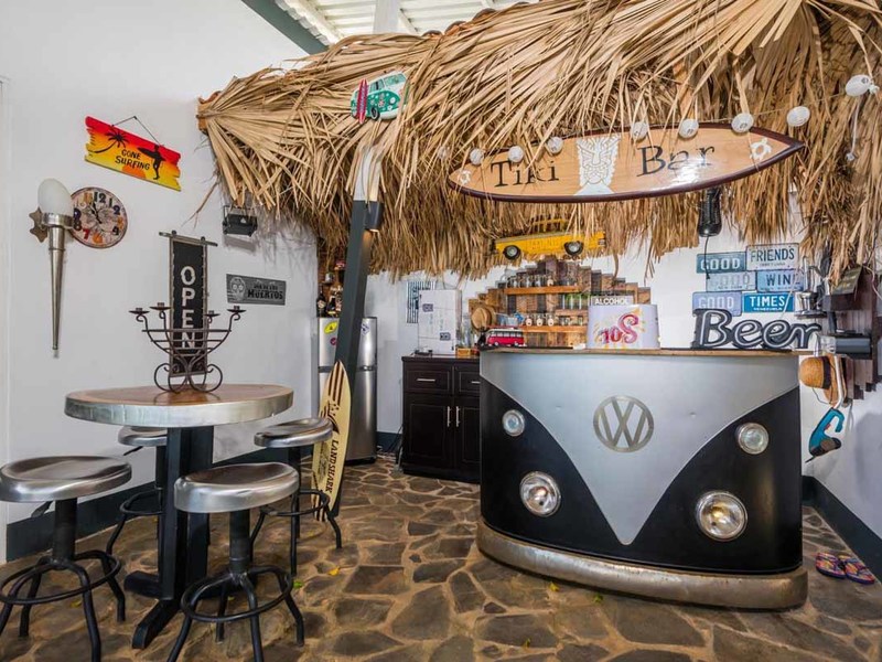 Do you love wide-open mountain and ocean views with fresh breezes? Do you fancy a Tiki Bar? How about one where the bar is actually the front of a VW van? Would you like to wile away the hours in a hanging bed under a thatched roof? Or relax in a chaise lounge by the pool? How about a nap in a hammock under a shade sail? Would your kids enjoy a swing set and a sandbox? Then Casablanca is the perfect place for you!