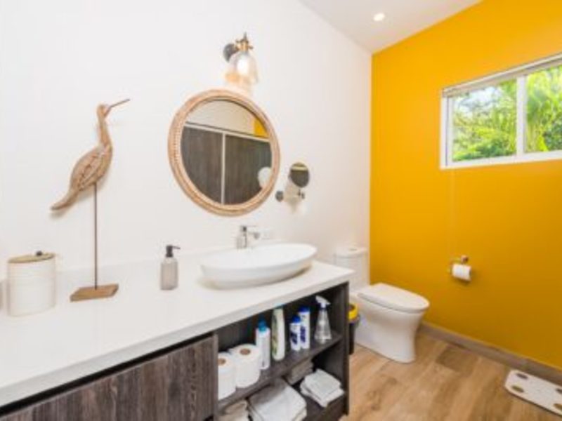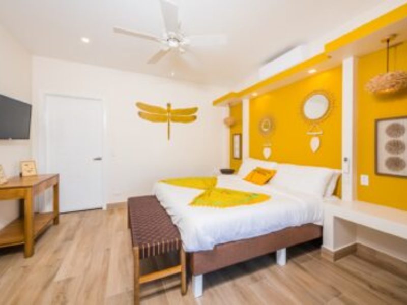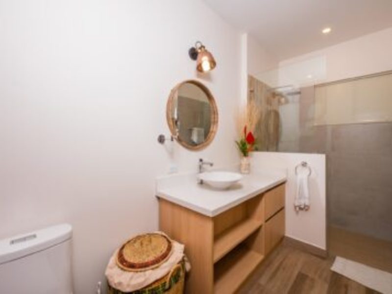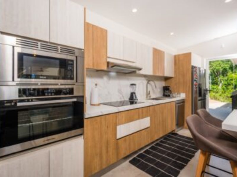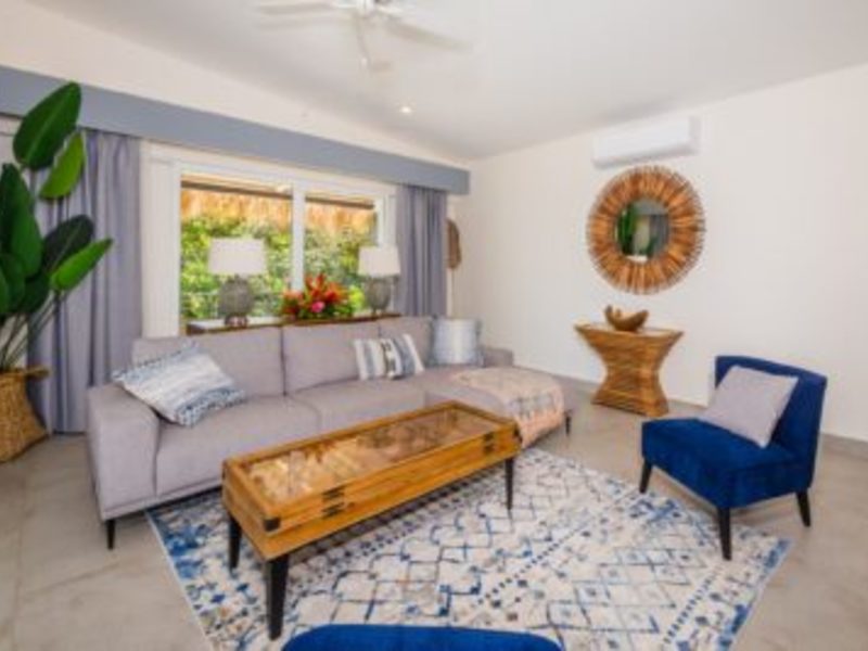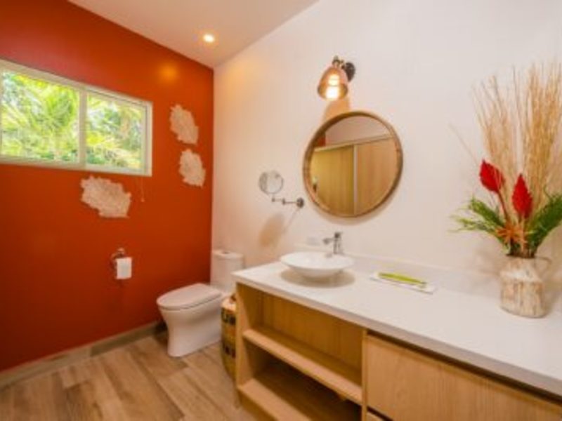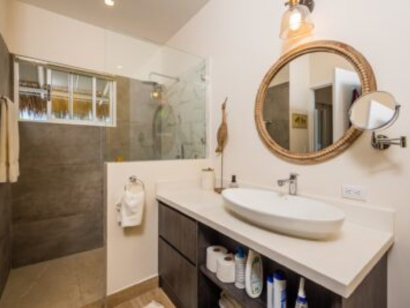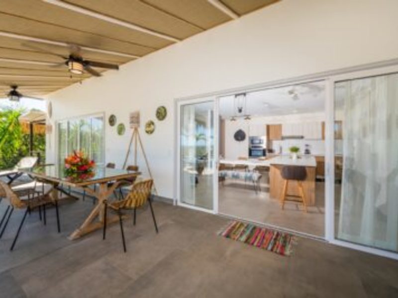 Each of the 3 bedrooms opens onto a large wrap-around covered terrace and the pool, ensuring that relaxation is always just a step away. Every bedroom features a king bed, beautiful decor, and its en suite bathroom. Additionally, the third bedroom offers a bonus 4th bedroom with bunk beds, sharing the bathroom with bedroom #3.
