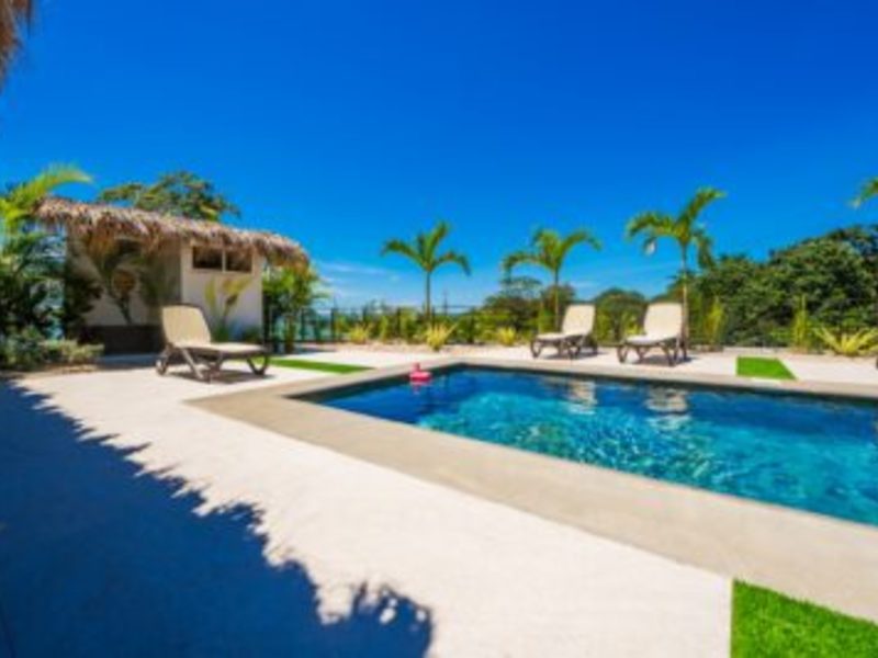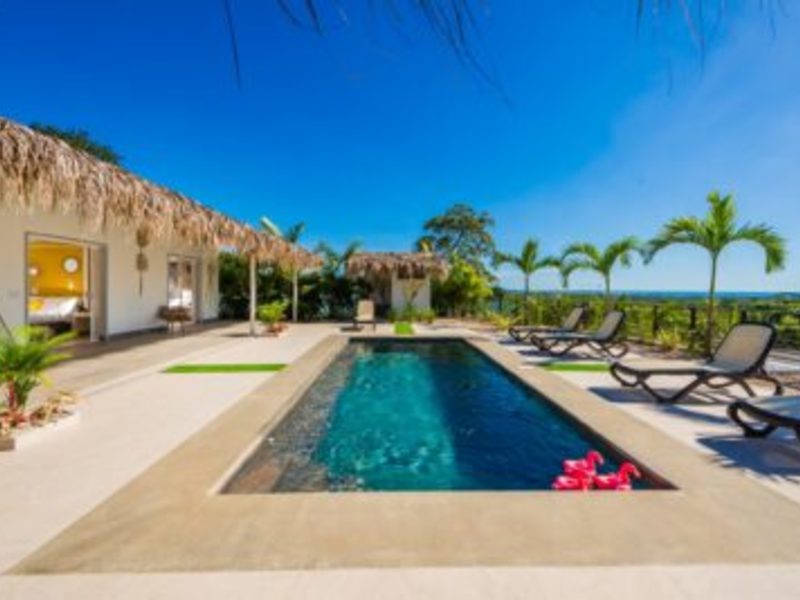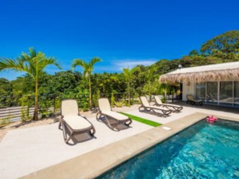 Welcome to Villa Loulou, a stunning new home offering breathtaking views of the ocean and forest in Playa Grande. Step inside to a spacious terrace with panoramic views of the valley and ocean, leading to a refreshing pool that invites you to relax and unwind amid natural beauty. The layout of the house places the living quarters together in one structure, with the bedrooms accessible by a covered roof outside. The open layout seamlessly connects the living room and kitchen, providing a comfortable and stylish space for gatherings with loved ones.