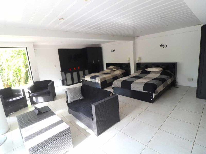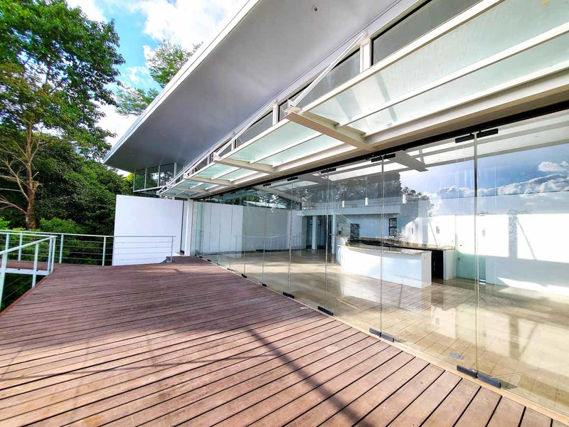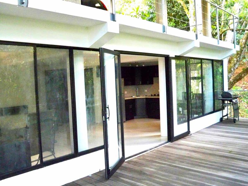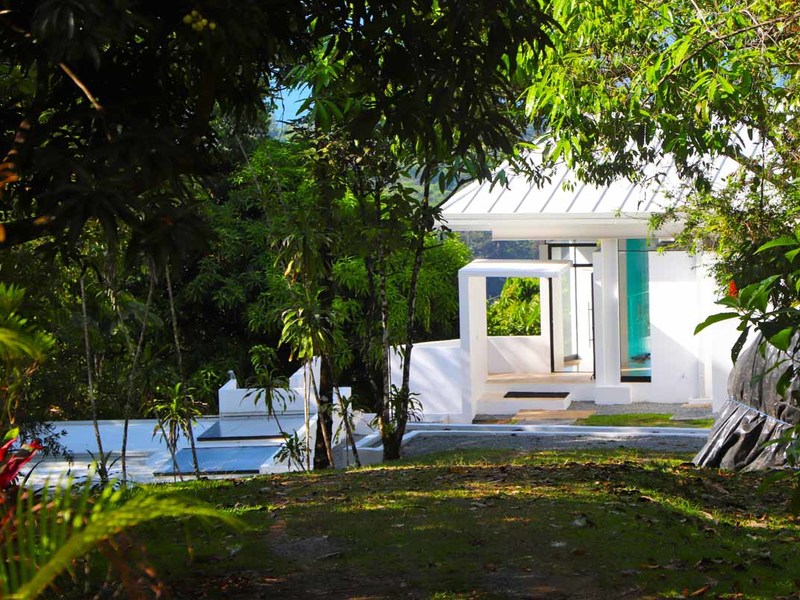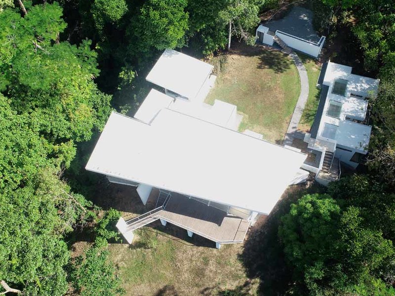 This incredible 7 acres bordered by the stream with a waterfall at the front can be yours to enjoy. In addition to the two main and lower houses plus a large 1 bedroom studio apartment/guest house, there are plenty of other features as well. It boasts a contemporary-styled concrete and glass main house with an open-concept design, operable glass walls for full connection to nature, mature fruit trees, and potential for additional cabins—the list goes on!