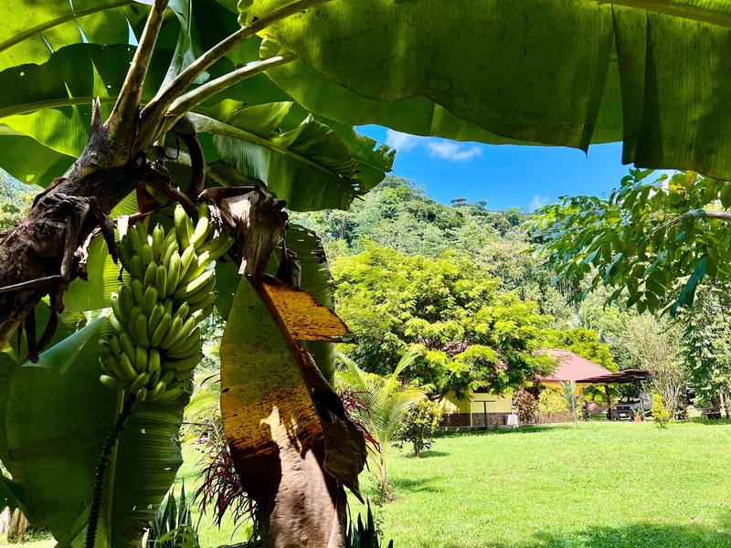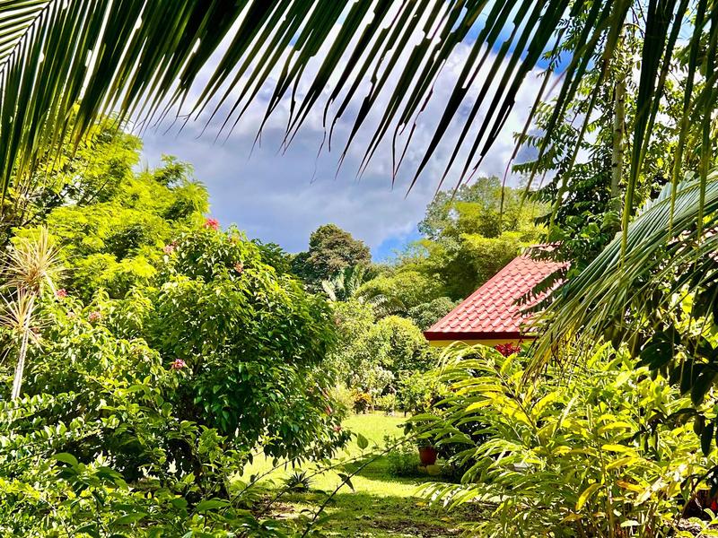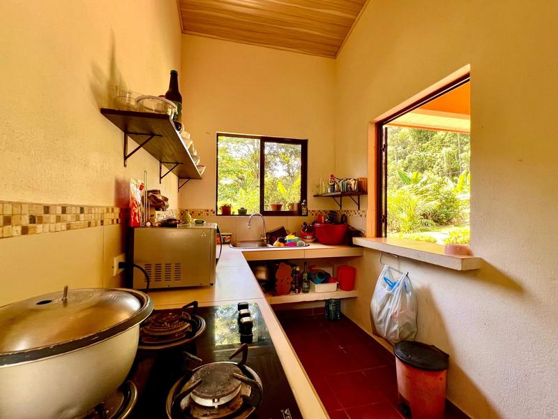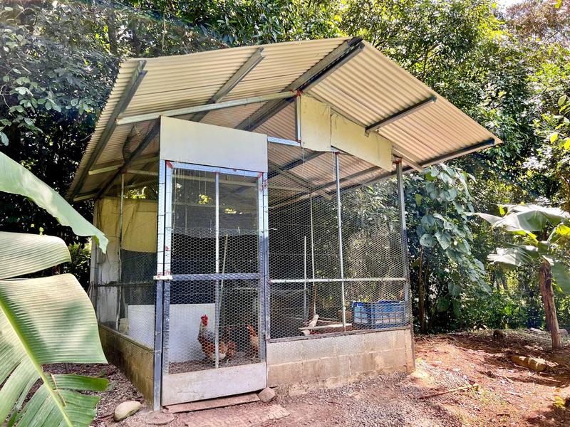 An orchard of over 80 tree species, including various fruit and medicinal plants, graces the property. Rambutans, lemons, oranges, bananas, papaya, cocoa, yucca, pineapple, tamarindo, and guava are just a few of the treasures. A henhouse, currently home to 10 chickens, enhances self-sufficiency.