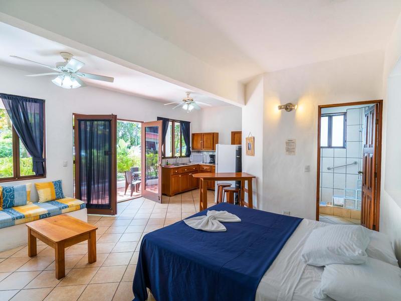 The Junior Villa is nestled in the lush hills of Manuel Antonio, These Junior Villas offer an ideal paradise escape. As soon as you step inside, you'll feel right at home with a spacious 800 sq ft interior that features two bedrooms filled with queen-sized beds and a cozy living room separated by a half wall. Enjoy breathtaking views from the terrace where you can relax in a hammock and soak up the sun's rays.