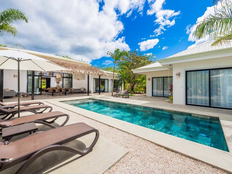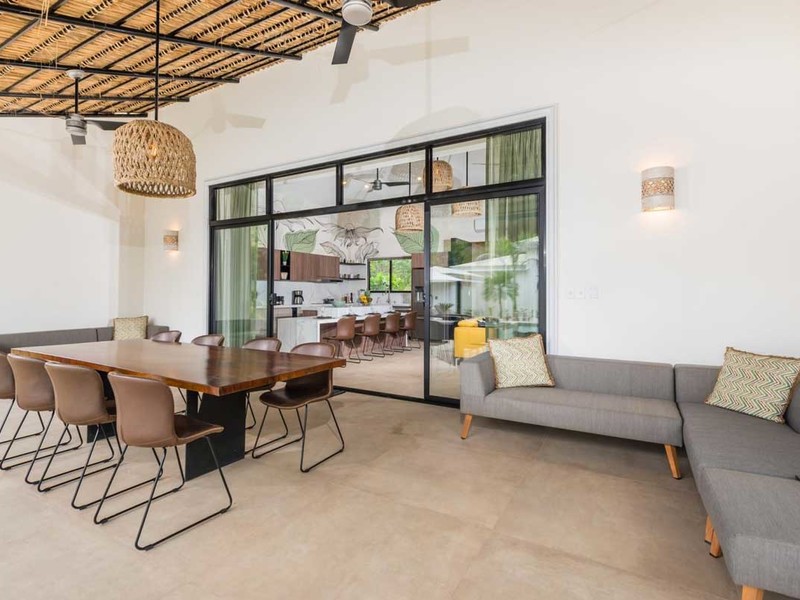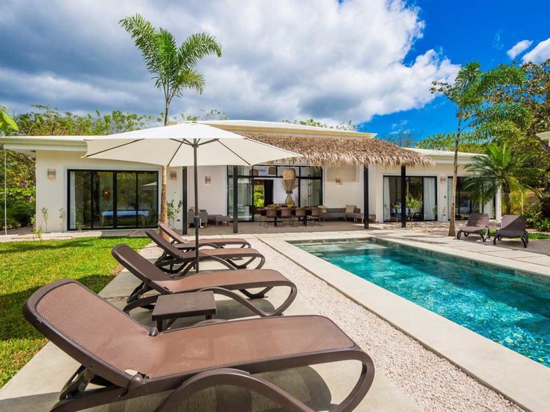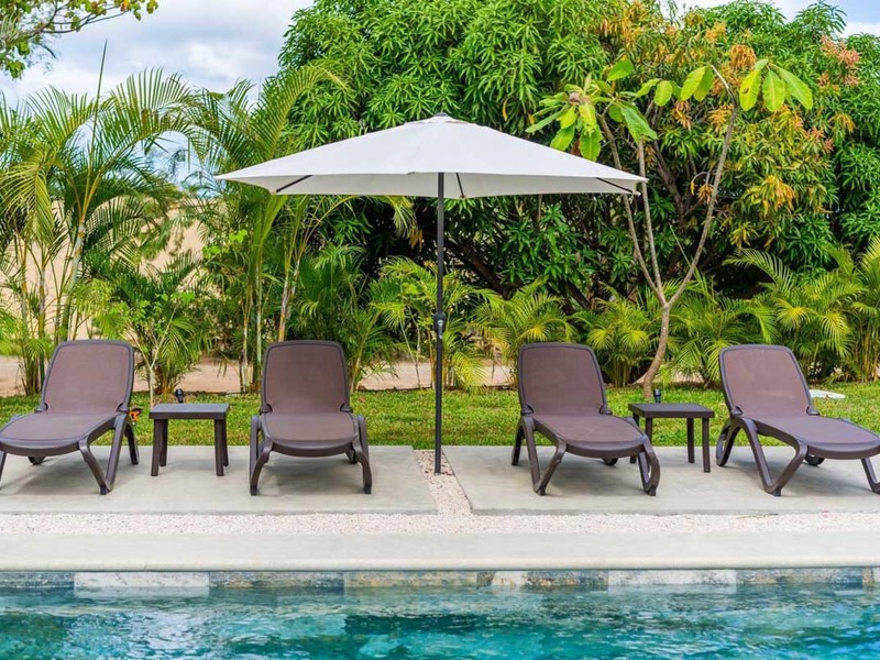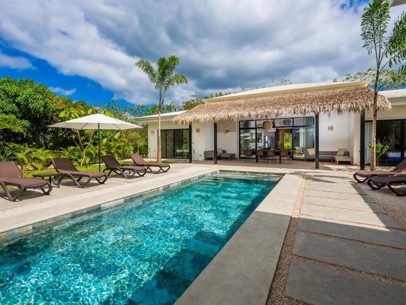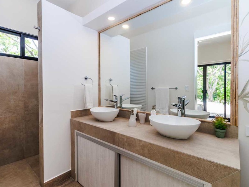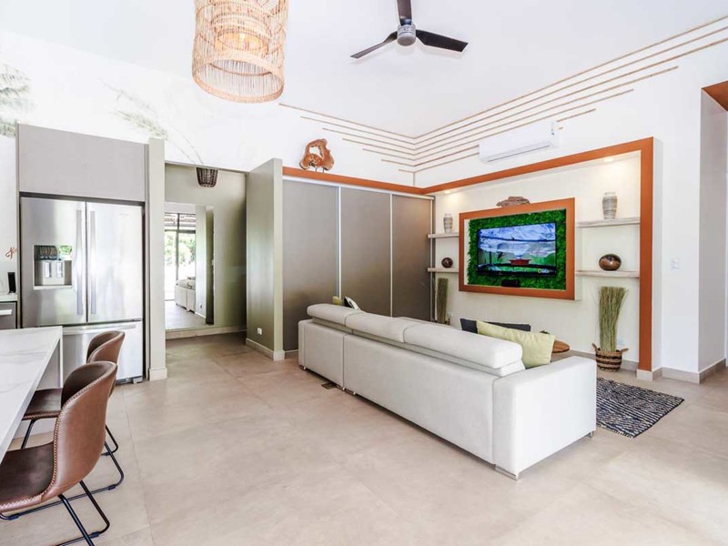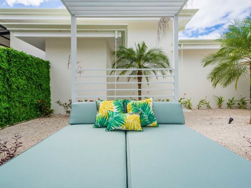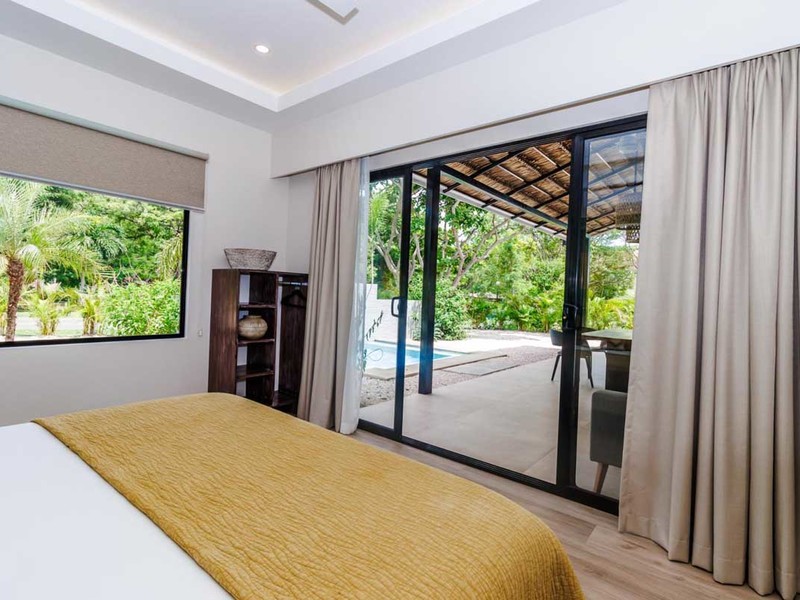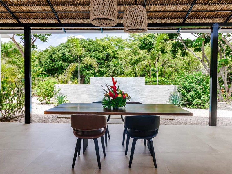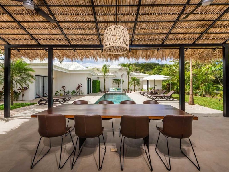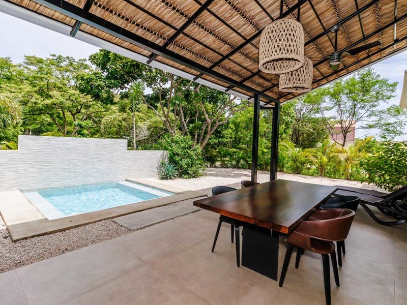 Casa Duna’s guest home is located at the front of the property and looks directly at the community pond area that is full of wild ducks and majestic trees. This 1800 sq ft home has been tastefully decorated with a tropical chic style. It has 2 bedrooms, and 2 bathrooms and offers a gourmet kitchen with a breakfast bar and vaulted ceilings This home also has its own palm roof-covered terrace area with an outdoor dining and lounge area and a private pool to soak up the Costa Rica fresh air, sights, and sounds.