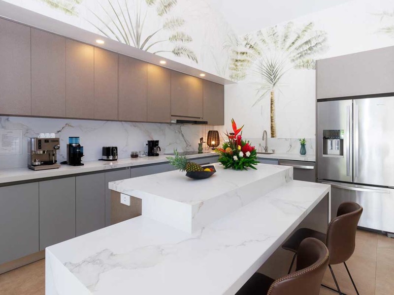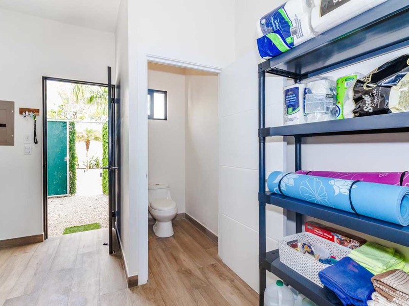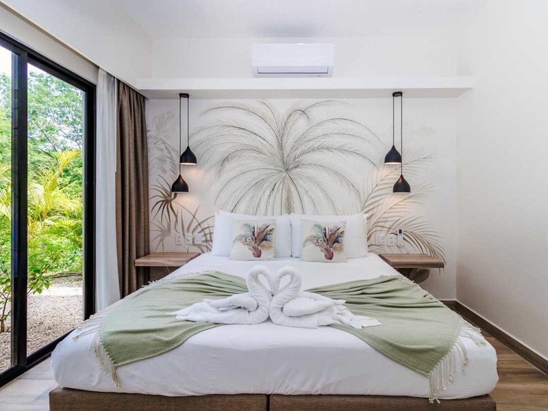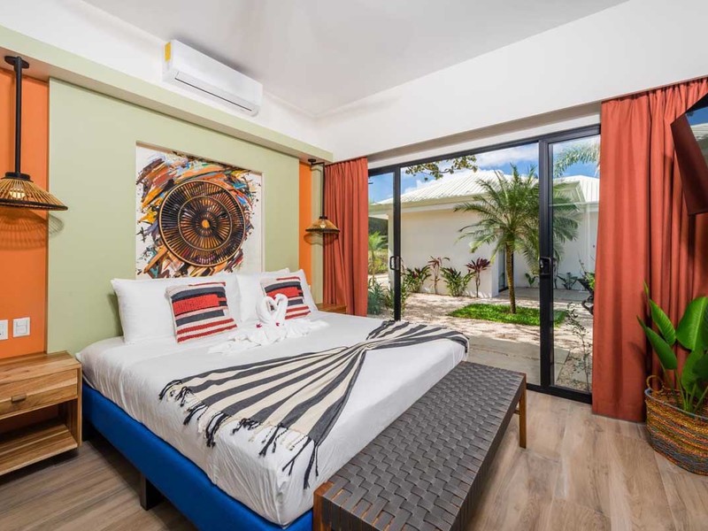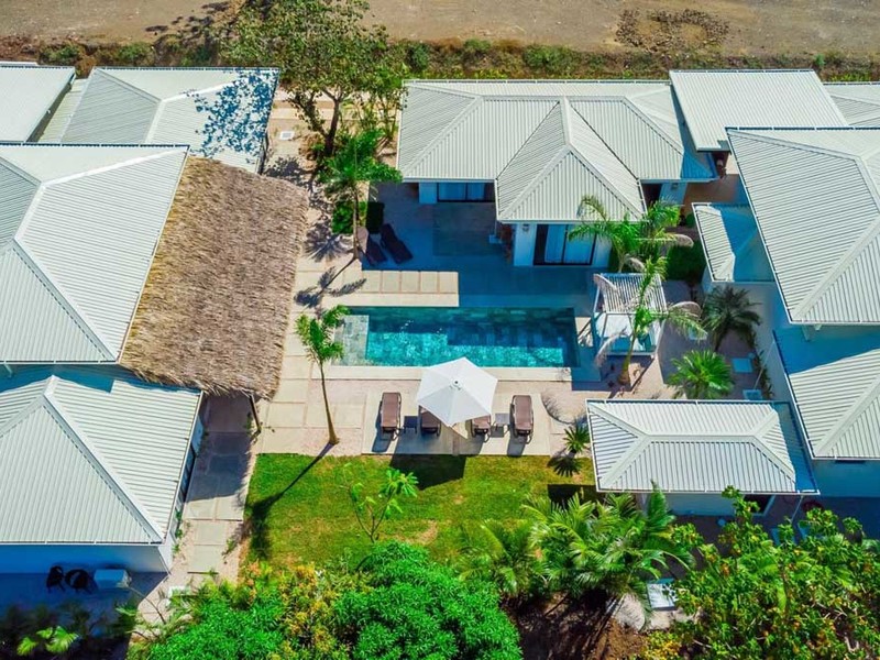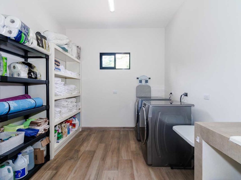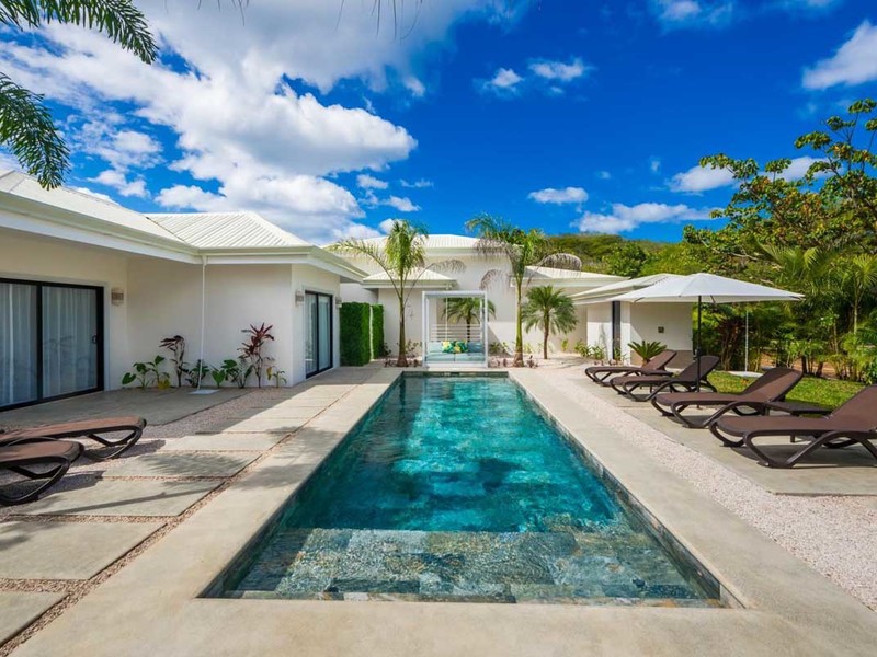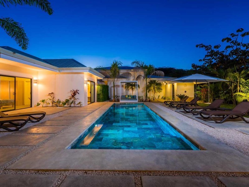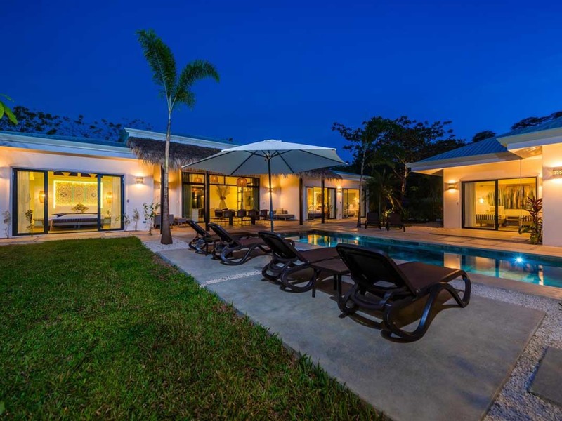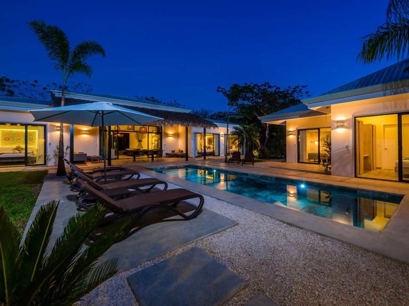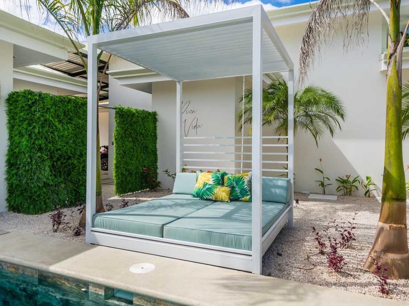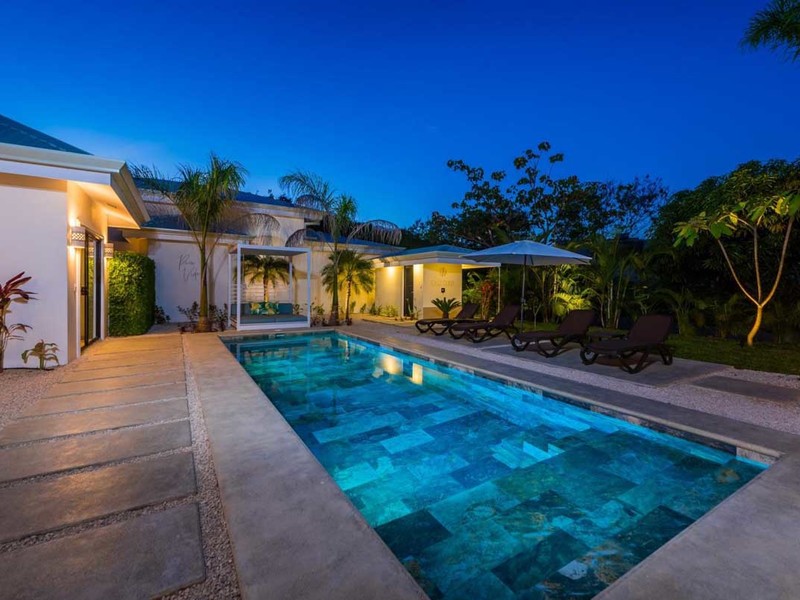 Casa Duna’s guest home is located at the front of the property and looks directly at the community pond area that is full of wild ducks and majestic trees. This 1800 sq ft home has been tastefully decorated with a tropical chic style. It has 2 bedrooms, and 2 bathrooms and offers a gourmet kitchen with a breakfast bar and vaulted ceilings This home also has its own palm roof-covered terrace area with an outdoor dining and lounge area and a private pool to soak up the Costa Rica fresh air, sights, and sounds.