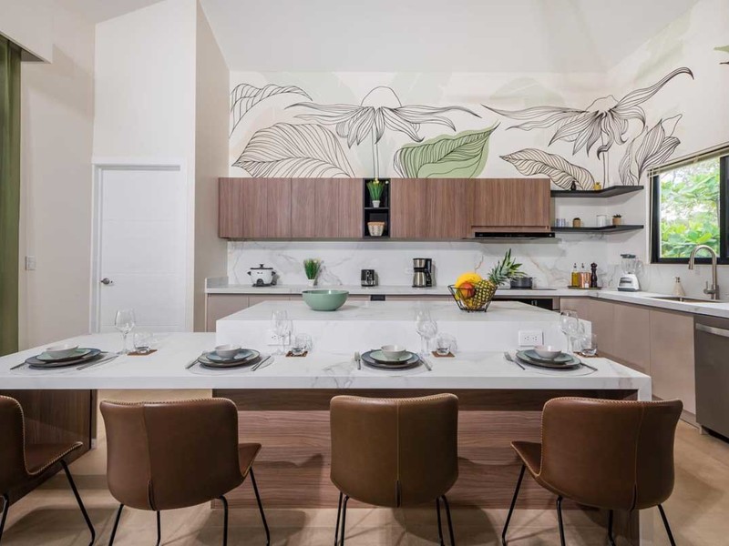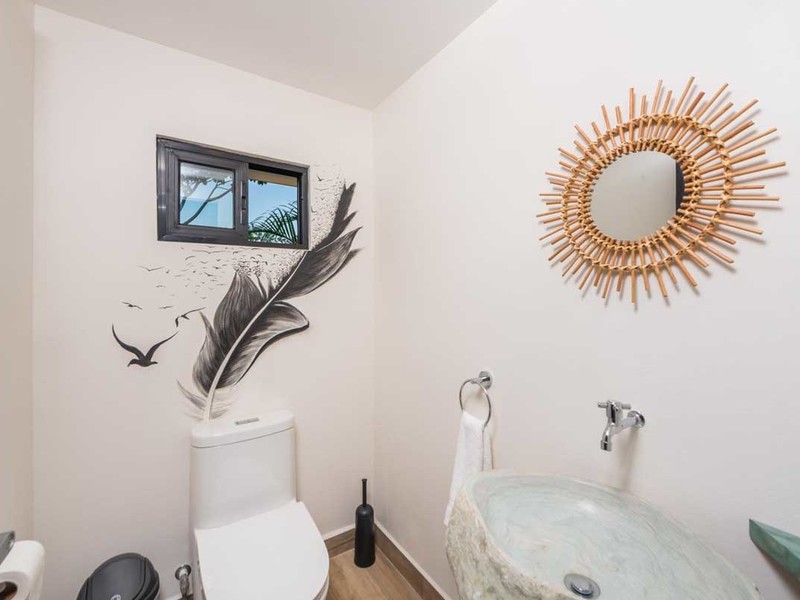 Casa Duna, located in the sought-after luxury community of Senedros in Tamarindo, is a unique tropical retreat. This gorgeous brand-new property consists of 2 homes with 7 bedrooms, 6 full bathrooms, 2 half-bathrooms, and 2 pools all on a 1600m2 lot. Casa Duna comes fully furnished and turnkey. The house and guest house were built in 2023 and are professionally designed and decorated. They are fascinatingly beautiful! Each room has a theme to it and there are hand-painted murals throughout the homes with bright bedding and splashes of color to add to the decor. This property definitely has a WOW factor! You feel like you are somewhere special at Casa Duna.