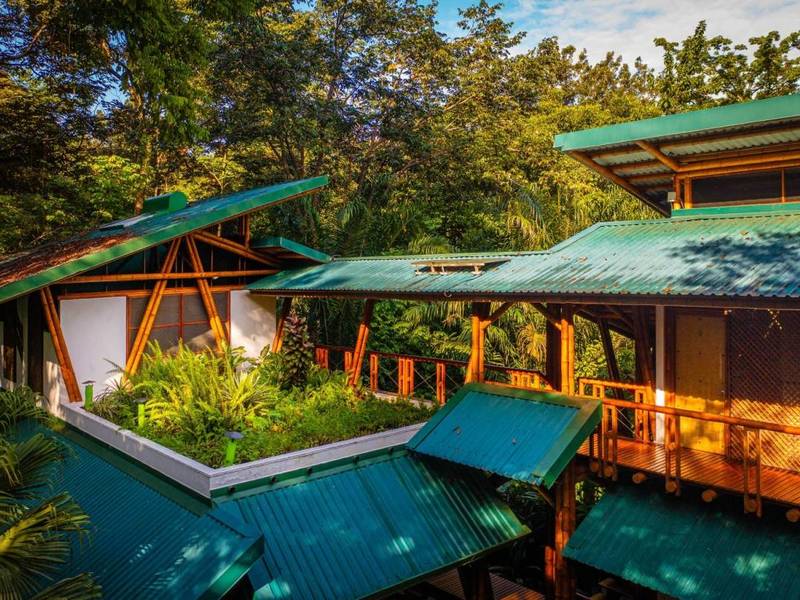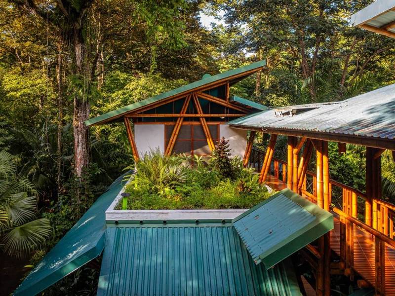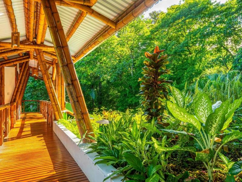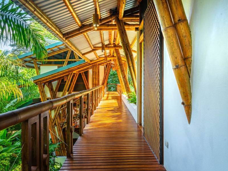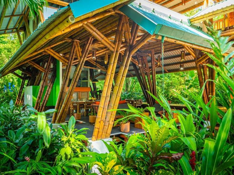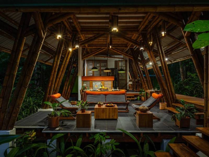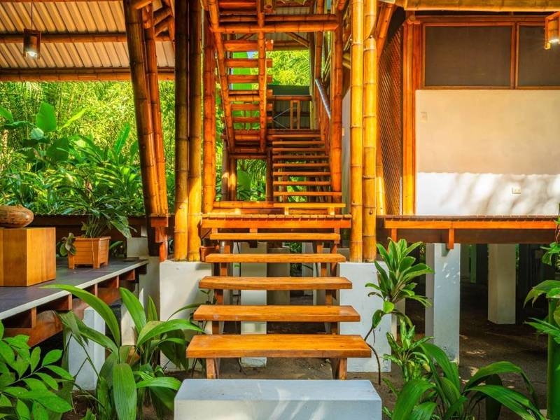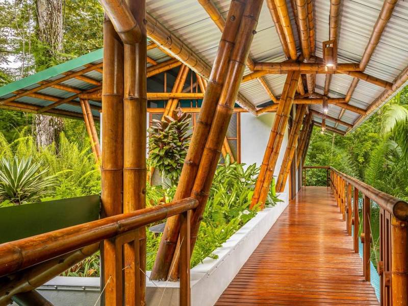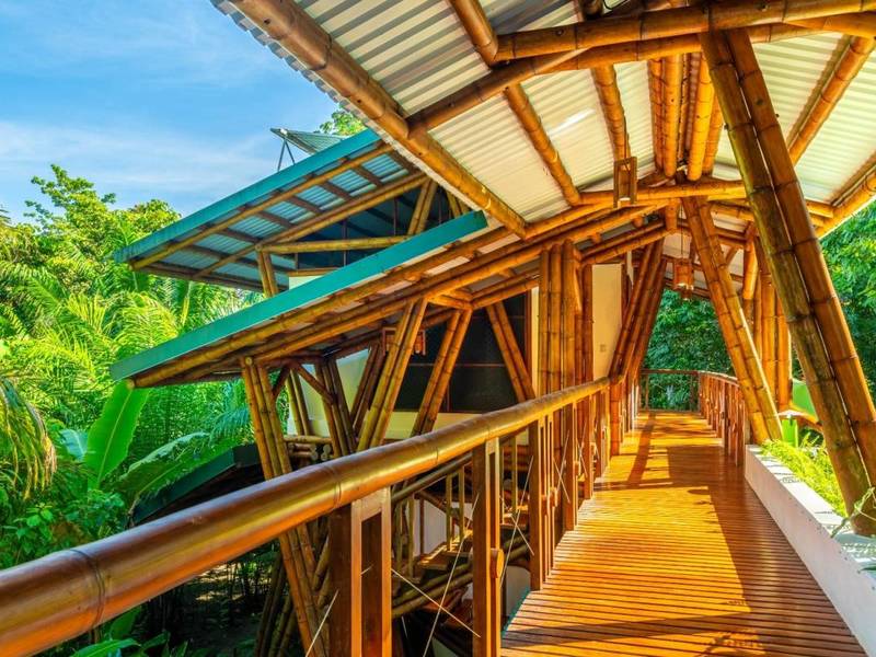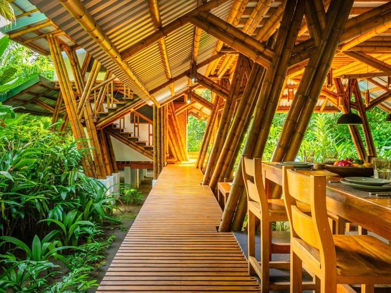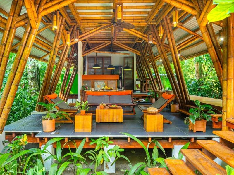 This award-winning contemporary home embraces off-grid living with technology and its freshwater well. Its stunning design showcases spaces and soaring cathedral ceilings—a masterpiece of engineering and bamboo construction.