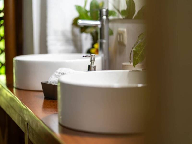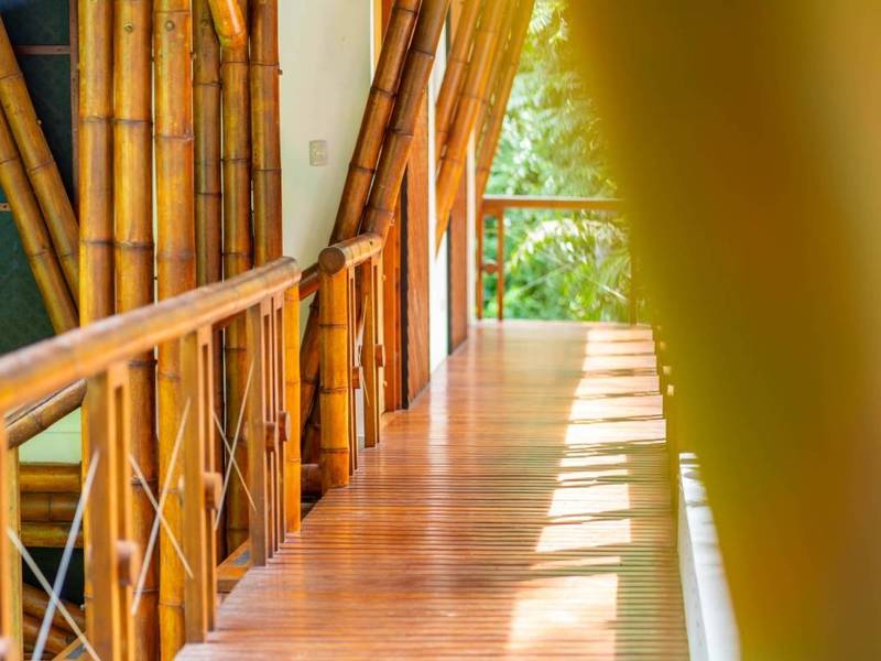 Ascending the teak and bamboo steps to the floor you'll find four bedrooms. These bedrooms exude an atmosphere, with their surroundings and each one has its own creatively designed private bathroom.