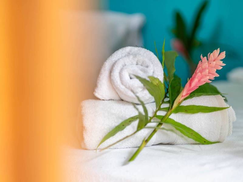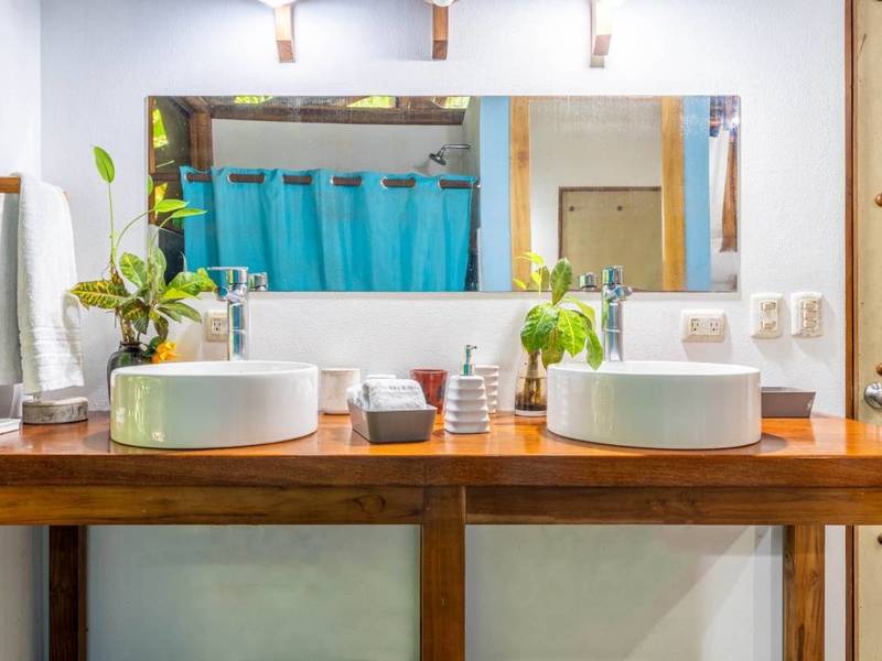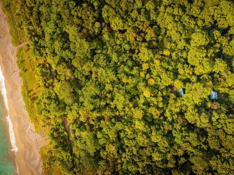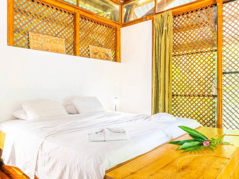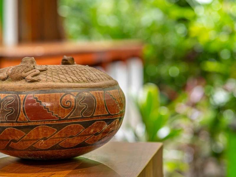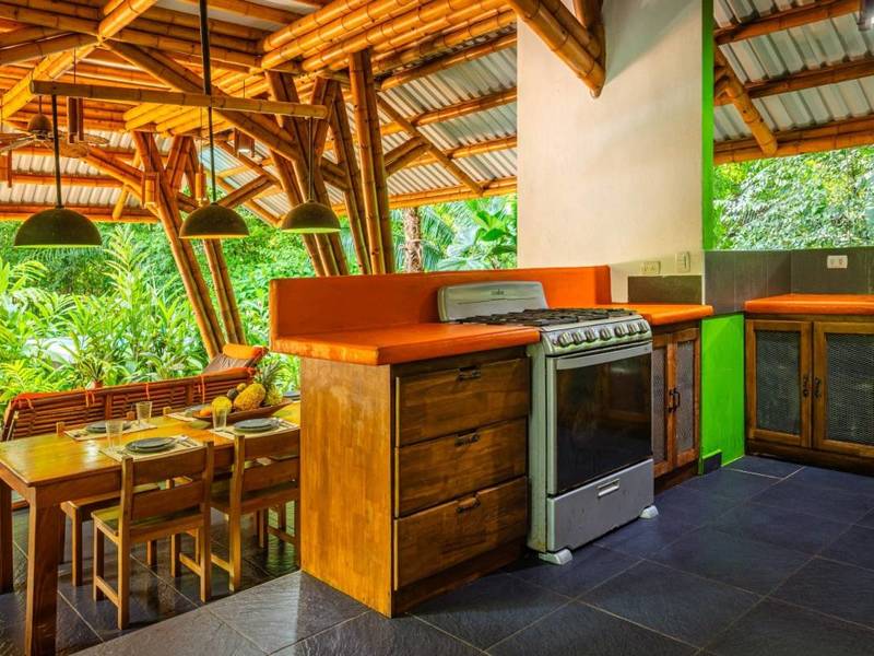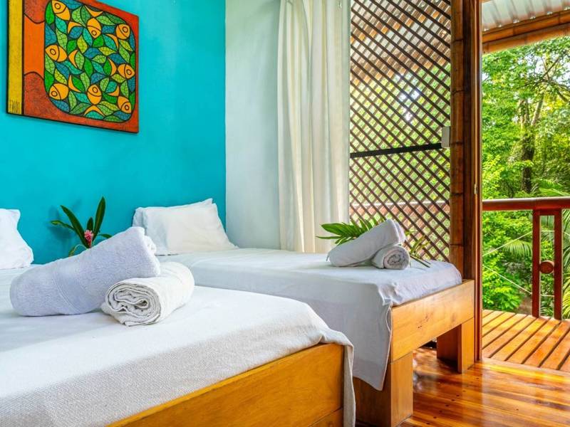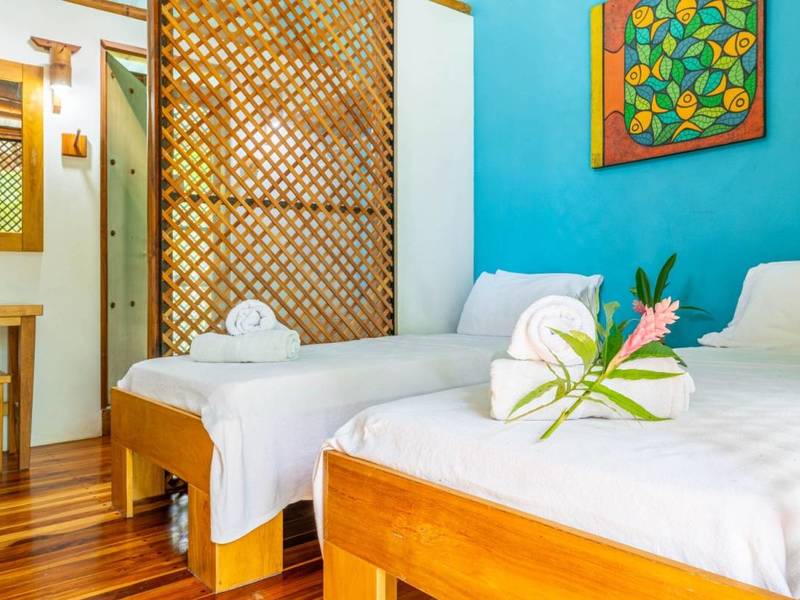 Tucked away behind the main house is an area filled with various fruit trees like bananas, plantains, pineapples, mangoes, and different citrus trees. If you venture further along the pathway behind the property you'll discover mangroves and a creek. Wildlife is abundant here – it's not uncommon to spot macaws occasionally encountering monkeys, sloths, or even an anteater.
